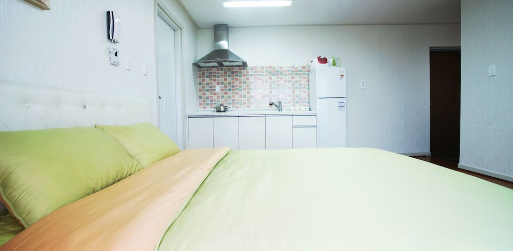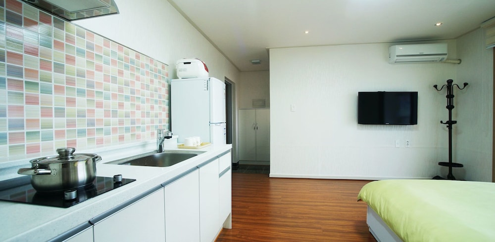 Met een verblijf bij Jeju J Pension in Seogwipo, in Andeok, bevind je je op 4 min. rijden van Sanbangsan-berg en op 8 min. van Hello Kitty Island. Dit pension ligt op 11,4 km van Jeju Shinhwa World en op 20,8 km van Strand van Hyeopjae. Doe of je thuis bent in één van de 11 kamers met kitchenettes. De kamers hebben een flatscreentelevisie met kabelzenders, terwijl je dankzij gratis wifi online blijft. Bij de voorzieningen horen een koelkast en een waterkoker en de kamers worden op verzoek schoongemaakt. Afstanden worden weergegeven tot op 0,1 mijl en kilometer.