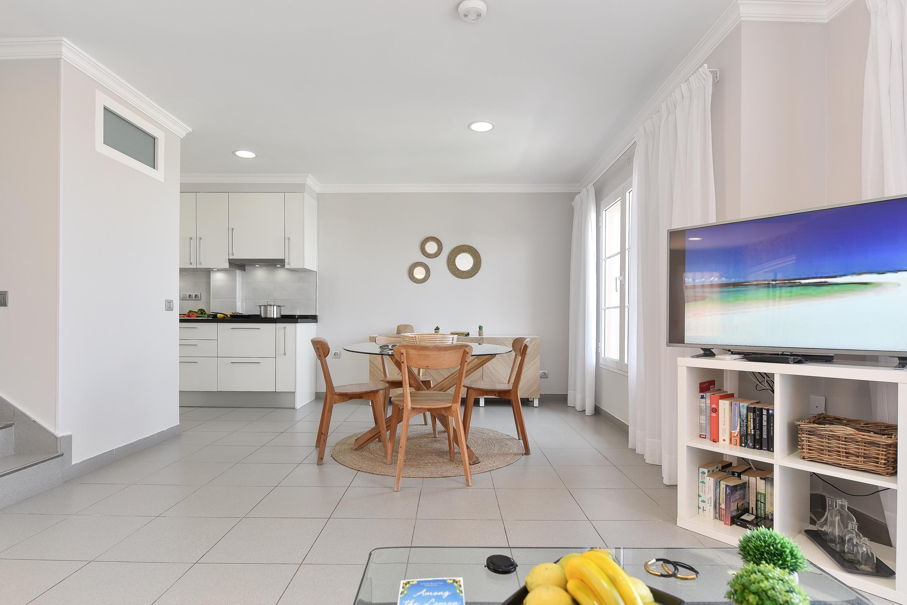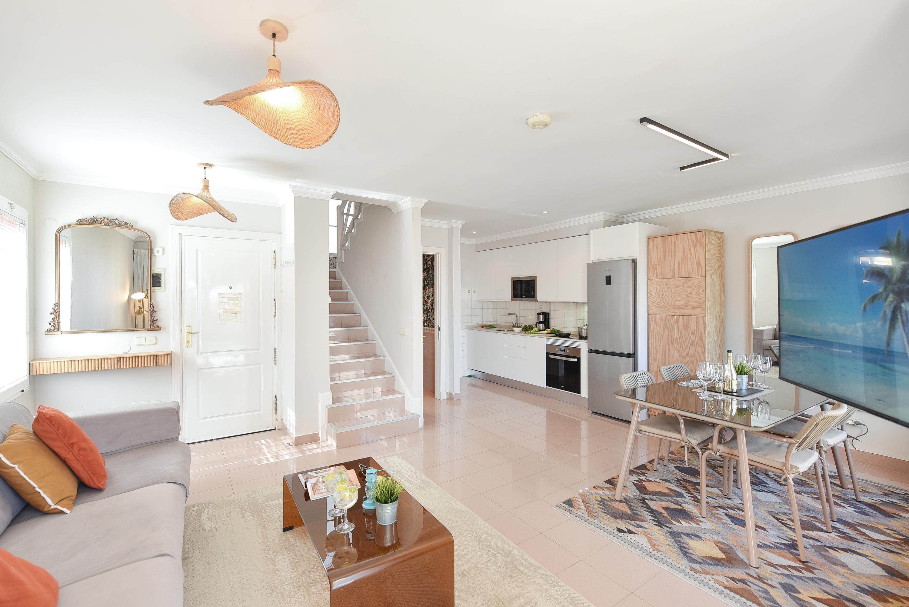 Chalets Santa Ana in Playa del Inglés biedt een idyllische ontsnapping. Slechts een steenworp afstand van het goudgele zand van de Maspalomas-duinen en een korte wandeling naar de bruisende promenade met zijn restaurants, supermarkten en winkels. Deze chalets met twee en drie slaapkamers beschikken over een badkamer boven, een extra badkamer of toilet beneden, een ruime woonkamer/keuken met een Smart TV en gratis internettoegang, en een zonnig terras met ligstoelen. Sommige accommodaties bieden een whirlpool tegen een toeslag. Gasten kunnen genieten van een gemeenschappelijk zwembad (verwarmd in de winter) en gratis parkeergelegenheid op het terrein. Wekelijkse schoonmaak, inclusief schoon beddengoed en handdoeken, is inbegrepen voor een verblijf van meer dan zeven nachten. Een babybedje en een kinderstoel zijn op aanvraag beschikbaar voor kinderen jonger dan twee jaar. Persoonlijke sleuteloverdracht is beschikbaar tot 20:00 uur.
