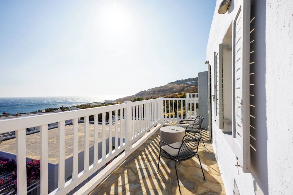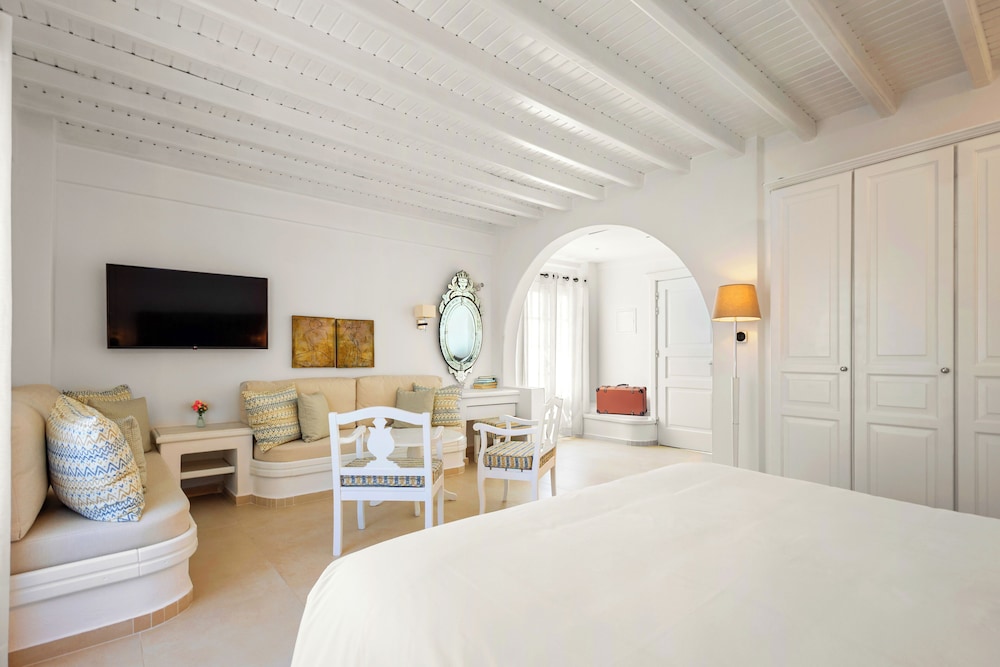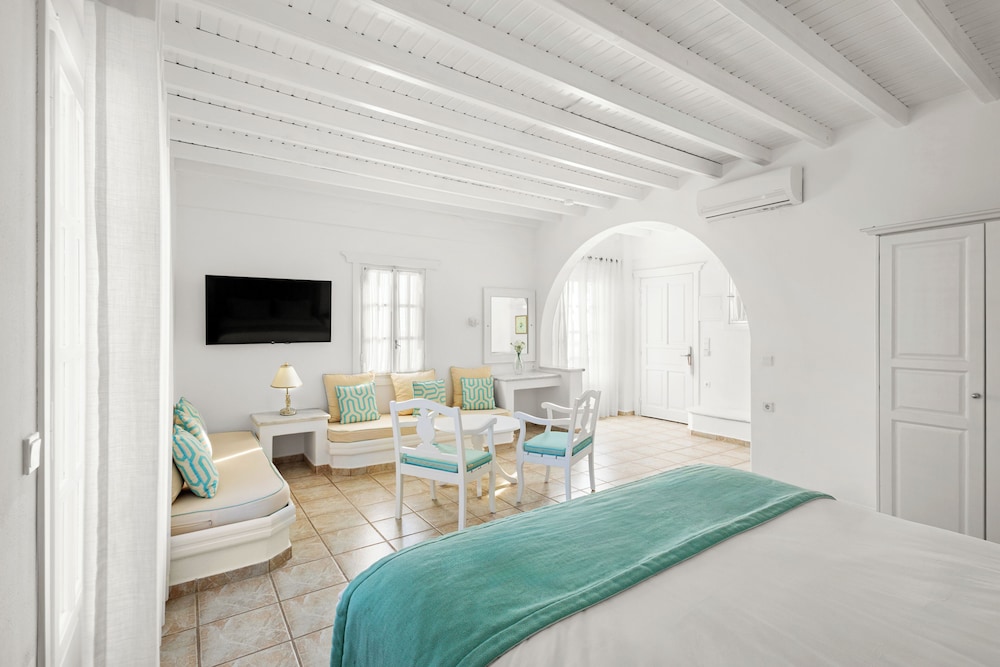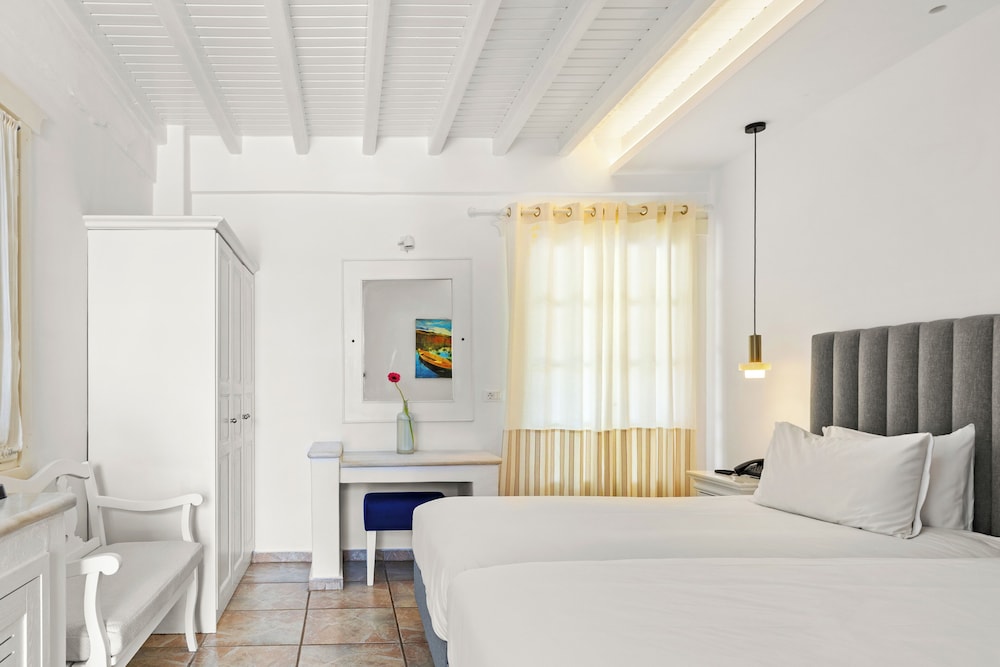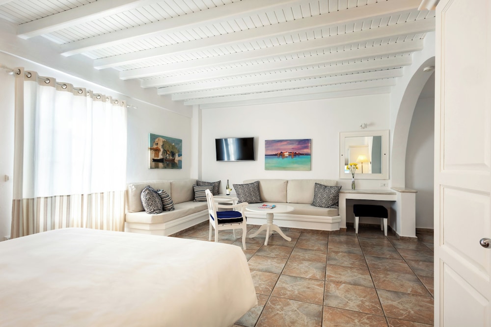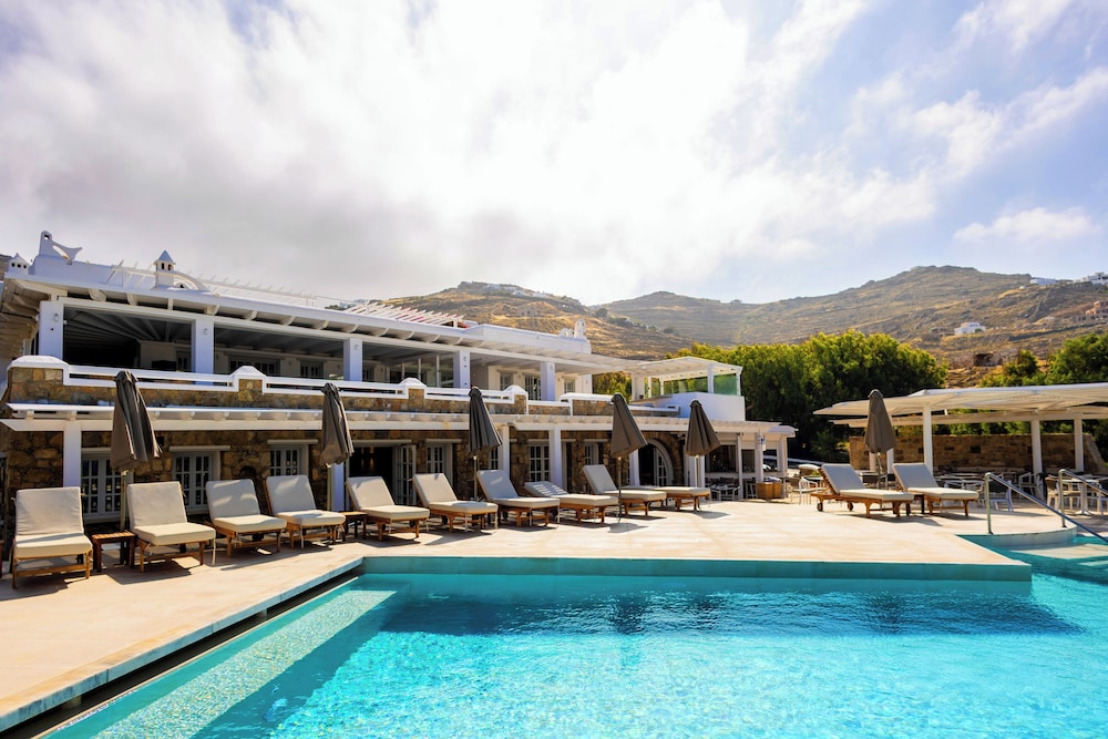 Enkele van de voorzieningen zijn een businesscentrum, een 24-uurs receptie en meertalig personeel. Plan je een evenement in Mykonos? Kies voor dit hotel met 100 vierkante meter aan ruimte, waaronder een conferentiecentrum en een vergaderruimte. Gasten kunnen tegen betaling gebruikmaken van een shuttleservice van/naar de luchthaven (op verzoek beschikbaar) en vervoer van/naar de cruiseterminal. Ontspan met massages, lichaamsbehandelingen en gezichtsbehandelingen wanneer je de volledig uitgeruste spa bezoekt. Je vindt de recreatieve voorzieningen vast wel leuk, met onder meer 2 buitenzwembaden, een stoombad en fitnessfaciliteiten. Dit hotel bevat ook gratis wifi, conciërgeservices en oppasservices (toeslag). De gratis strandshuttle brengt je moeiteloos tot aan het strand. Geniet van Griekse gerechten bij Pythari, een van de 2 restaurants van dit hotel, of blijf lekker binnen en profiteer van de roomservice (beperkte tijden). Ontspan met je favoriete drankje in een bar/lounge of een poolbar. Dagelijks kun je van 08.00 uur tot 11.00 uur genieten van een gratis ontbijtbuffet.