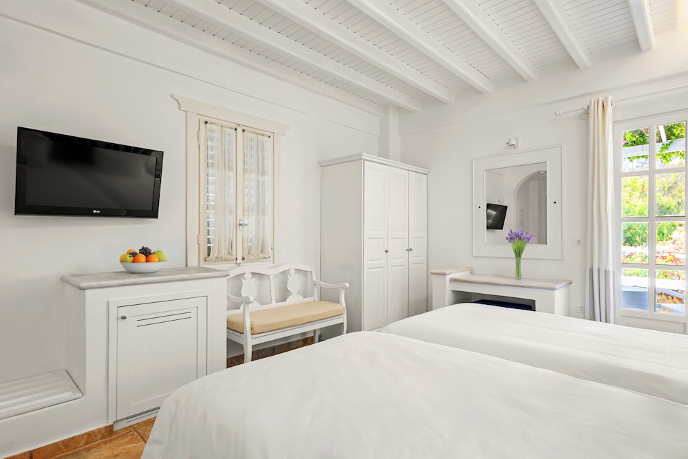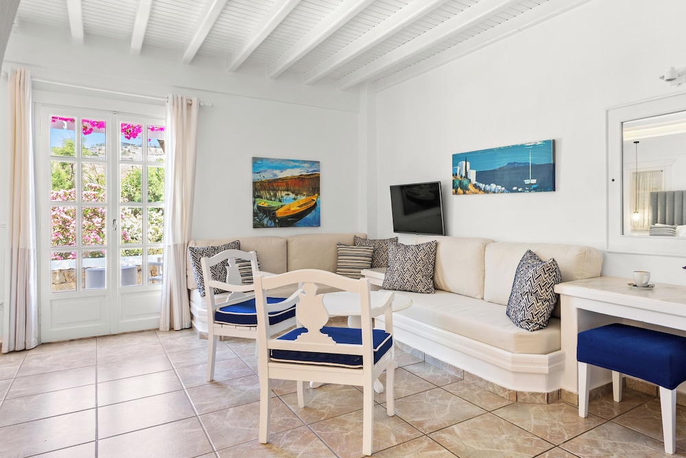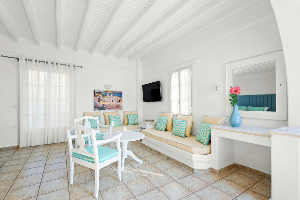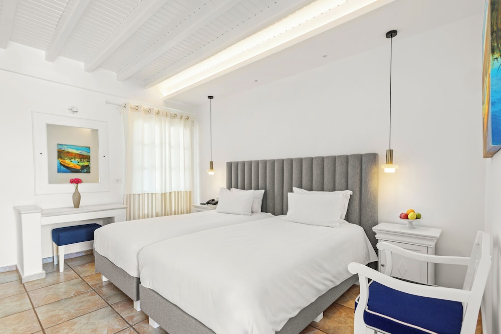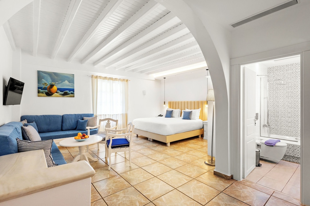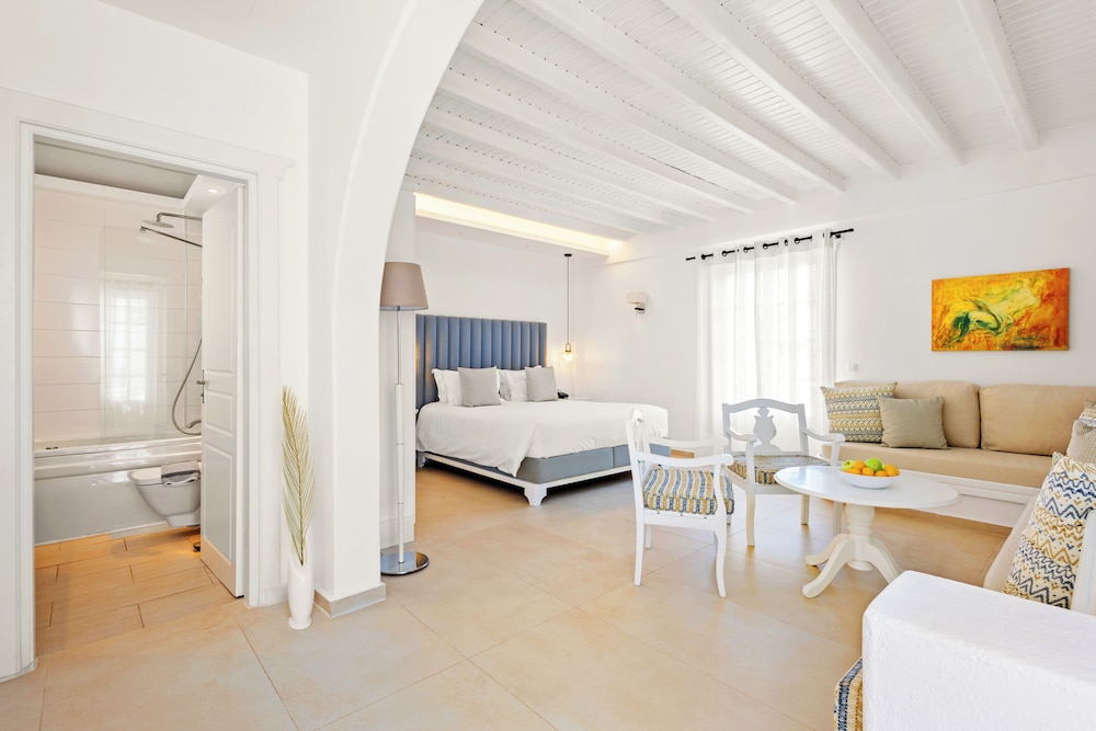 Enkele van de voorzieningen zijn een businesscentrum, een 24-uurs receptie en meertalig personeel. Plan je een evenement in Mykonos? Kies voor dit hotel met 100 vierkante meter aan ruimte, waaronder een conferentiecentrum en een vergaderruimte. Gasten kunnen tegen betaling gebruikmaken van een shuttleservice van/naar de luchthaven (op verzoek beschikbaar) en vervoer van/naar de cruiseterminal. Ontspan met massages, lichaamsbehandelingen en gezichtsbehandelingen wanneer je de volledig uitgeruste spa bezoekt. Je vindt de recreatieve voorzieningen vast wel leuk, met onder meer 2 buitenzwembaden, een stoombad en fitnessfaciliteiten. Dit hotel bevat ook gratis wifi, conciërgeservices en oppasservices (toeslag). De gratis strandshuttle brengt je moeiteloos tot aan het strand. Geniet van Griekse gerechten bij Pythari, een van de 2 restaurants van dit hotel, of blijf lekker binnen en profiteer van de roomservice (beperkte tijden). Ontspan met je favoriete drankje in een bar/lounge of een poolbar. Dagelijks kun je van 08.00 uur tot 11.00 uur genieten van een gratis ontbijtbuffet.