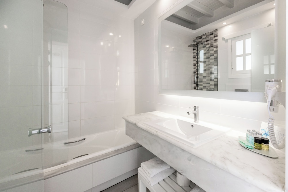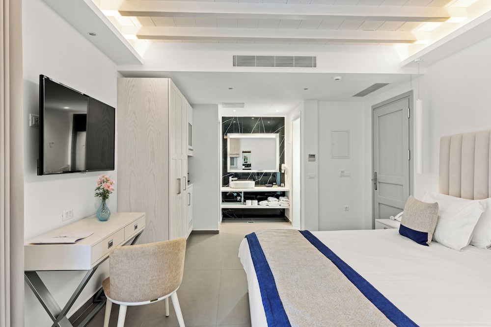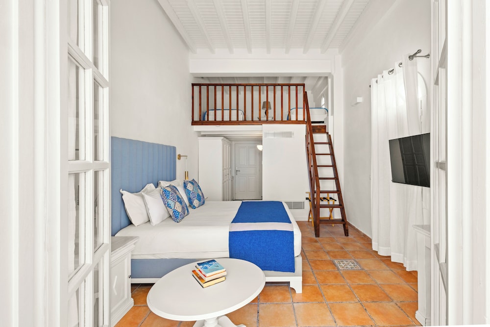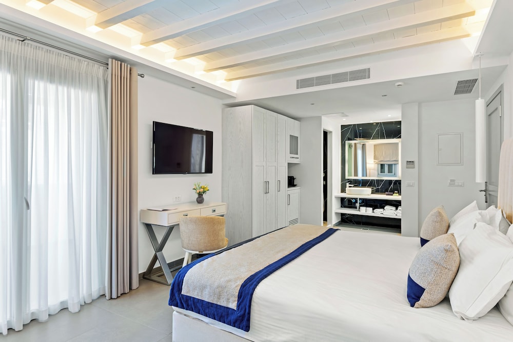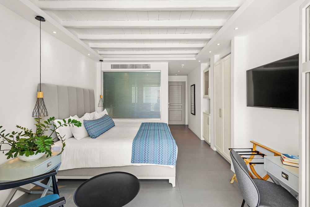 San Marco Hotel ligt in Mykonos bij de zee, op 5 min. rijden van Armenistis-vuurtoren en Nieuwe Haven van Mykonos. Dit hotel bij het strand ligt op 4,2 km van Oude Haven van Mykonos en op 4,3 km van Archeologisch museum van Mykonos. Doe of je thuis bent in één van de 84 individueel gedecoreerde kamers met een koelkast en een flatscreentelevisie. Alle kamers hebben een balkon. Dankzij gratis wifi blijf je online, terwijl de tv met satellietzenders zorgt voor het kijkplezier. Badkamers beschikken over een bad of douche, gratis toiletartikelen en haardrogers. Afstanden worden weergegeven tot op 0,1 mijl en kilometer.