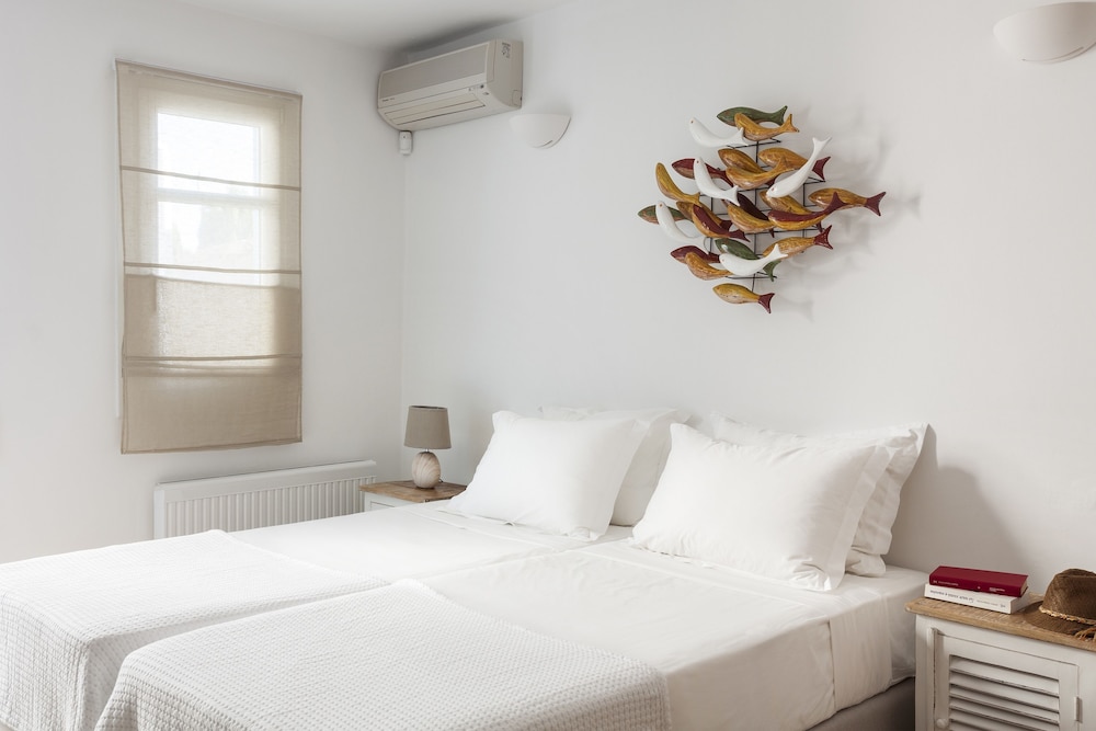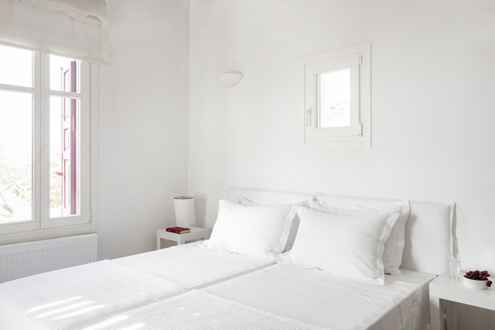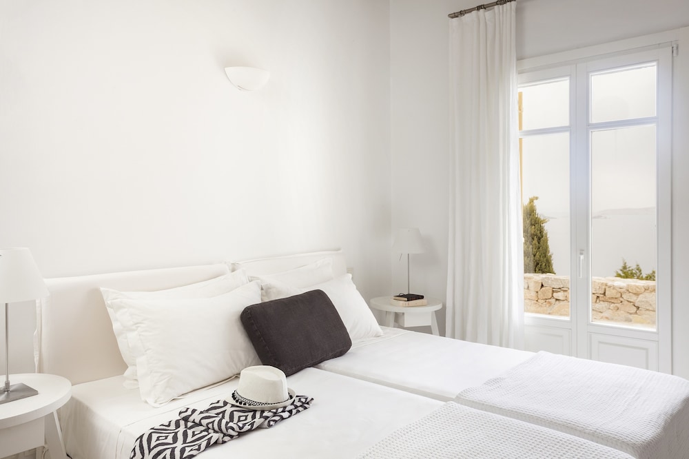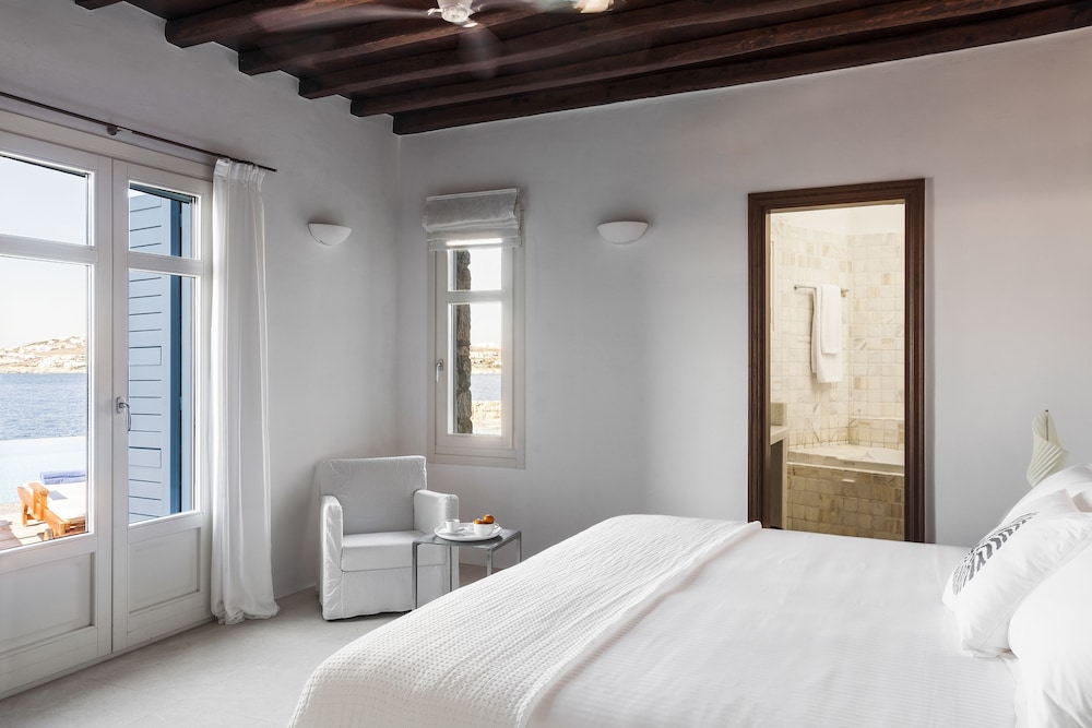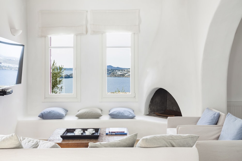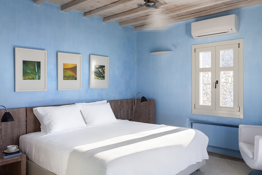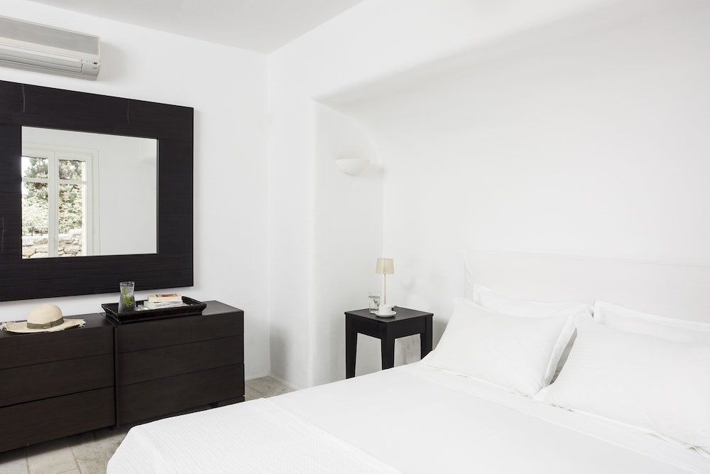 AGL Luxury Villas ligt in Mykonos in de buitenwijken, op een kwartiertje rijden van Windmolens van Mykonos en Strand van Bophut. Dit aparthotel in luxe stijl ligt op 2,5 km van Strand van Psarou en op 2,8 km van Platis Gialos-strand. Trakteer jezelf op een verblijf in één van de 10 individueel gedecoreerde kamers met een open haard en een smart-tv. De keukens beschikken over een koelkast, een oven en een kookplaat. De kamers hebben een flatscreentelevisie met kabelzenders, terwijl je dankzij gratis wifi online blijft. Bij de voorzieningen horen een kluis en een bureau en de kamers worden dagelijks schoongemaakt. Afstanden worden weergegeven tot op 0,1 mijl en kilometer.