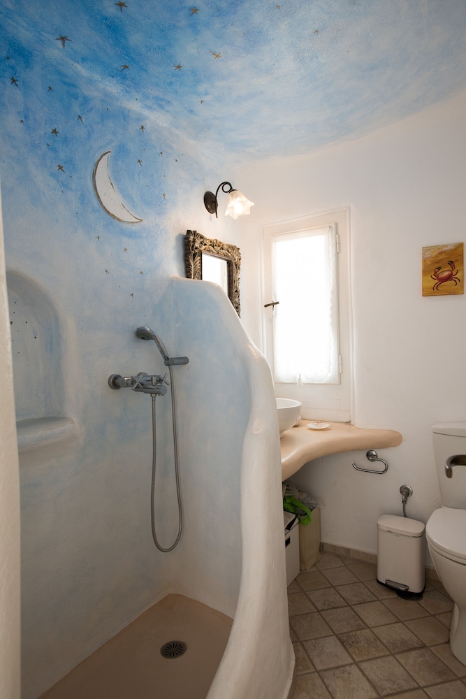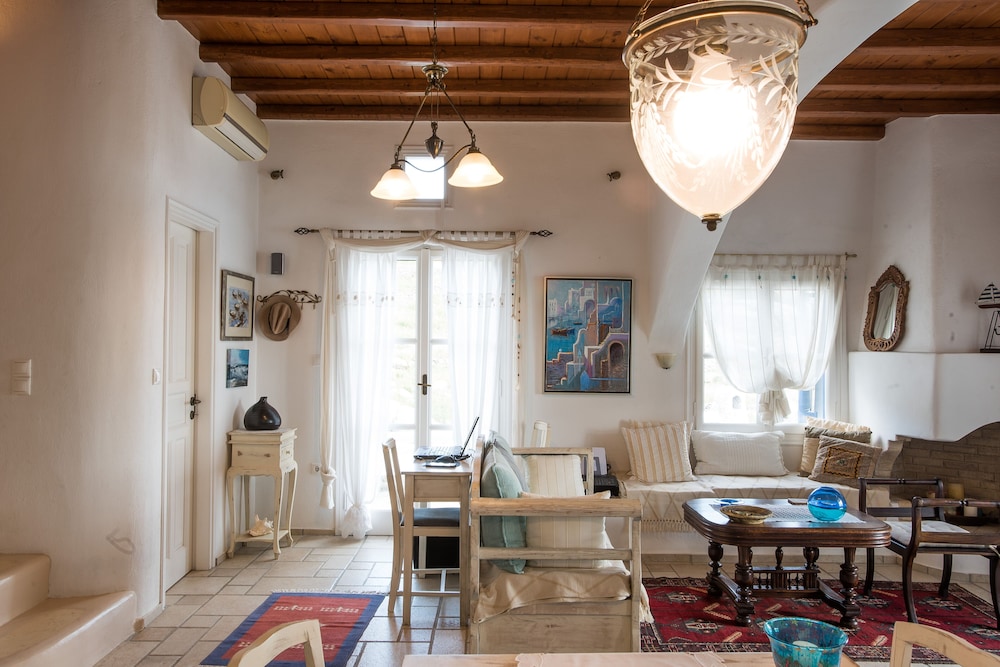 Wanneer je verblijft bij dit vakantiehuis in Mykonos bevind je je vlak bij het strand, op 10 min. lopen van Oude Haven van Mykonos en Windmolens van Mykonos. Dit vakantiehuis ligt op 5,5 km van Nieuwe Haven van Mykonos en op 4,3 km van Strand van Bophut. Maak het je gemakkelijk in dit vakantiehuis dat beschikt over airconditioning en een keuken met een koelkast en een oven. Er is een privé gemeubileerd balkon of terras. Er is gratis wifi om verbonden te blijven en een flatscreentelevisie voor je entertainment. Afstanden worden weergegeven tot op 0,1 mijl en kilometer.