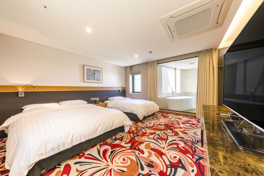 Met een verblijf bij Shin Shin Hotel Jeju Airport in Jeju, in de buurt Yeon-dong, bevind je je op slechts 5 min. rijden van Paradise Casino en Drakenkoprots. Dit hotel ligt op 4,4 km van Strand van Iho en op 4,4 km van Dongmun-markt. Doe of je thuis bent in één van de 209 kamers met een koelkast en een flatscreentelevisie. Je bed beschikt over donzen dekbedden en luxe beddengoed. Dankzij gratis wifi blijf je online, terwijl de tv met kabelzenders zorgt voor het kijkplezier. De privébadkamers met een bad of douche hebben gratis toiletartikelen en haardrogers. Afstanden worden weergegeven tot op 0,1 mijl en kilometer.
