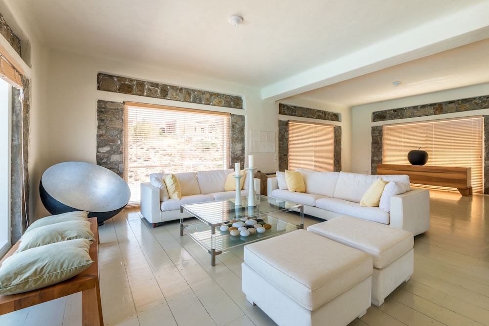 Wanneer je verblijft bij deze villa in Mykonos bevind je je vlak bij het strand, op 10 min. rijden van Oude Haven van Mykonos en Windmolens van Mykonos. Deze villa ligt op 11,4 km van Nieuwe Haven van Mykonos en op 3,7 km van Strand van Bophut. Maak het je gemakkelijk in deze villa met airconditioning en een magnetron. Er is gratis wifi beschikbaar om verbonden te blijven. De badkamer heeft een bad of douche.Er zijn verschillende voorzieningen aanwezig, waaronder een waterkoker, en de accommodatie wordt dagelijks schoongemaakt. Afstanden worden weergegeven tot op 0,1 mijl en kilometer.