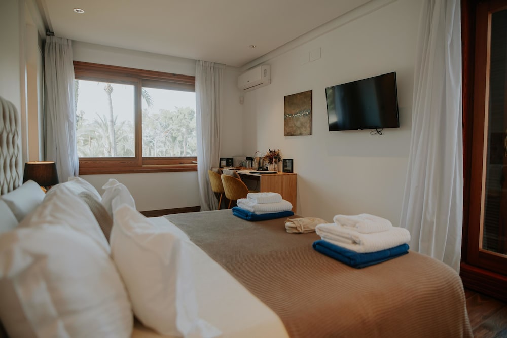 Met een verblijf bij Hotel Boutique Hort de Nal bevind je je in het hart van Elche, op 10 min. lopen van Arabische Baden van Elche en Museo Arqueológico y de Historia de Elche. Dit hotel ligt op 24,1 km van Winkelcentrum El Corte Inglés en op 24,4 km van Explanada de España. Doe of je thuis bent in één van de 8 klimaatgeregelde kamers met een flatscreentelevisie. Je bed met traagschuim matras komt met luxe beddengoed. Er is gratis wifi op de kamer als je op het internet wilt surfen. De privébadkamers zijn uitgerust met gratis toiletartikelen en haardrogers. Afstanden worden weergegeven tot op 0,1 mijl en kilometer.