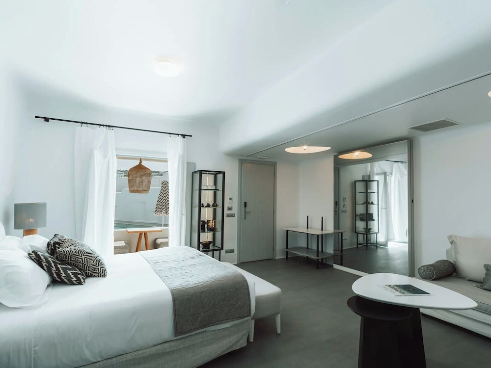 Wanneer je verblijft bij Mykonos Ammos Hotel in Mykonos, bevind je je aan het strand, in de buurt van Strand van Bophut en op 5 min. rijden van Oude Haven van Mykonos. Dit hotel bij het strand ligt op 6,3 km van Nieuwe Haven van Mykonos en op 6,5 km van Paradijsstrand. Doe of je thuis bent in één van de 50 individueel gedecoreerde kamers met minibars (met enkele gratis items) en een smart-tv. Je bed beschikt over donzen dekbedden en luxe beddengoed. Alle kamers hebben een gemeubileerde veranda. Dankzij gratis wifi blijf je online, terwijl de tv met satellietzenders zorgt voor het kijkplezier. De privébadkamers met een douche hebben een regendouche en designer toiletartikelen. Afstanden worden weergegeven tot op 0,1 mijl en kilometer.