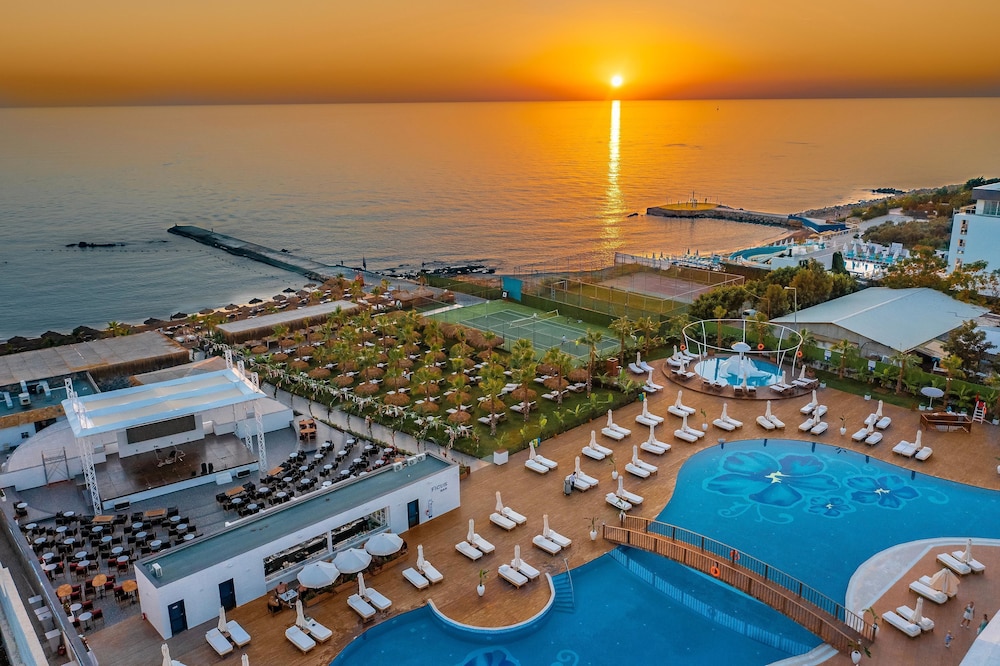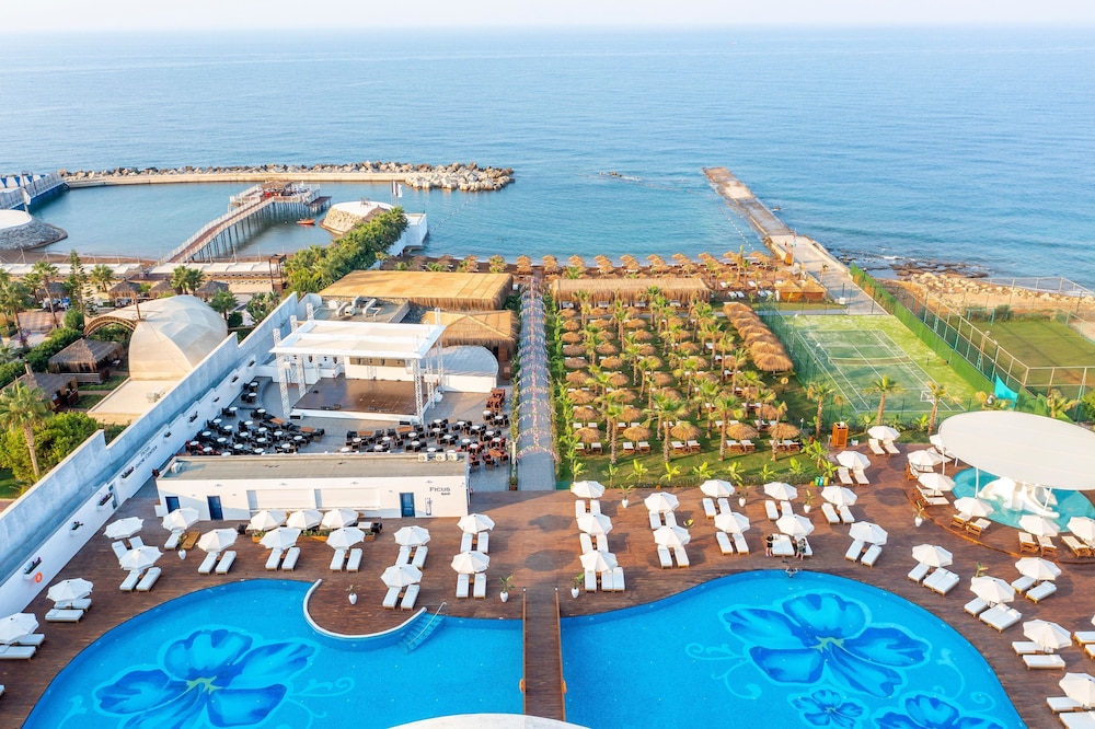 Rubi Platinum Sign ligt in Alanya op 2 min. rijden van Sealanya en op 6 min. van Alara Bazaar. Deze accommodatie met alles inbegrepen ligt op 20,3 km van Kleopatra-strand en op 23,2 km van Alanya waterpark. Doe of je thuis bent in één van de 168 klimaatgeregelde kamers met gratis minibars en een lcd-televisie. Dankzij gratis wifi blijf je online, terwijl de tv met satellietzenders zorgt voor het kijkplezier. Badkamers beschikken over haardrogers en badjassen. Bij de voorzieningen horen een telefoon, net zoals een kluis en een bureau. Afstanden worden weergegeven tot op 0,1 mijl en kilometer.