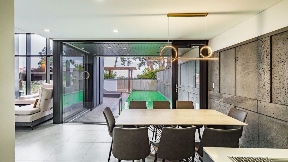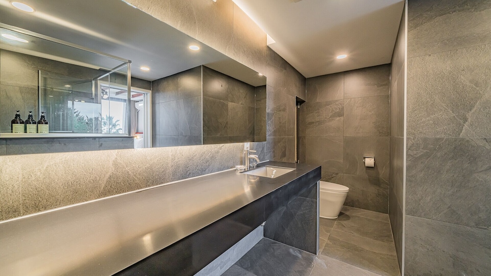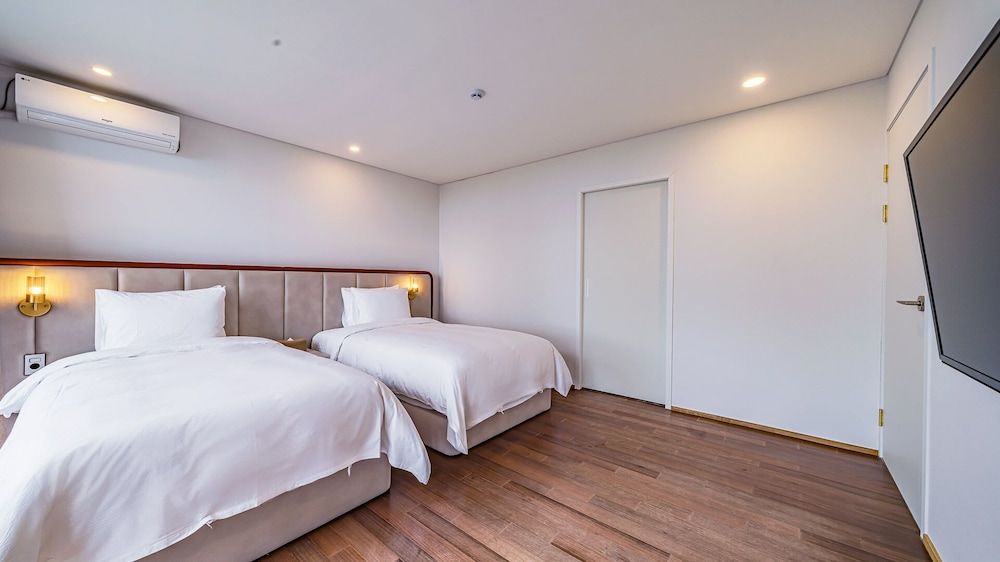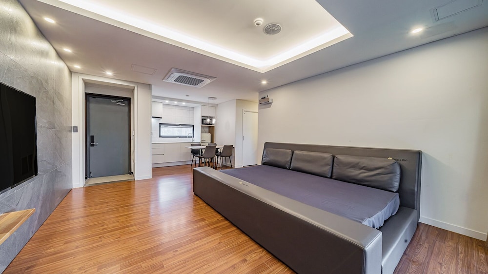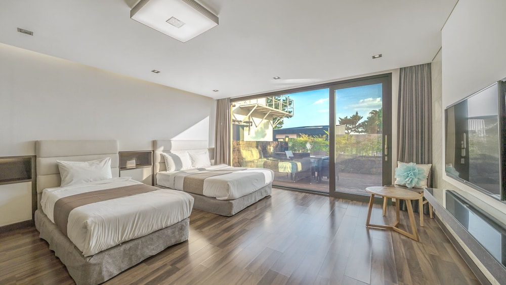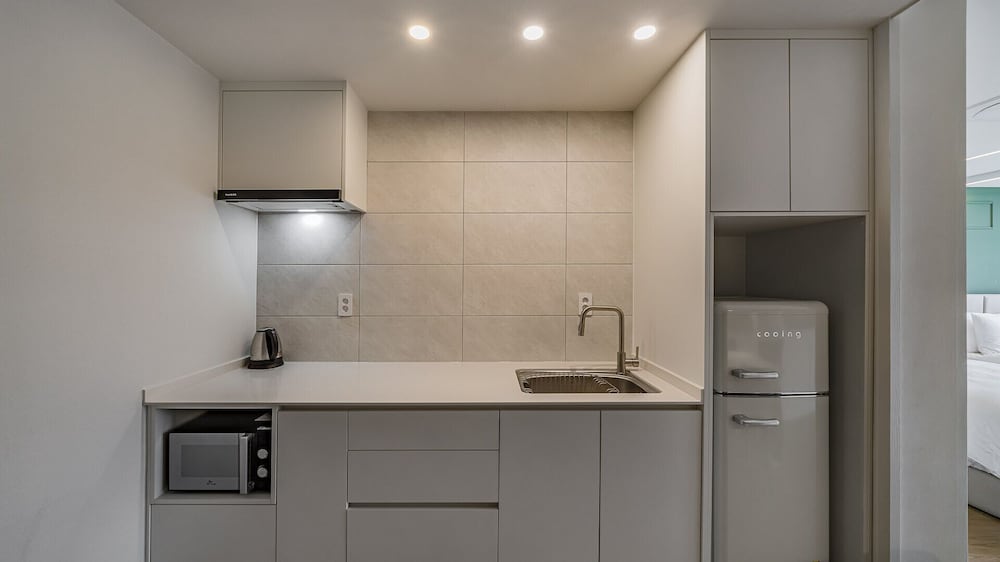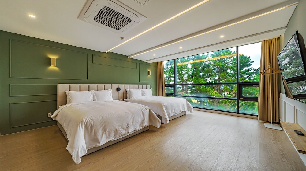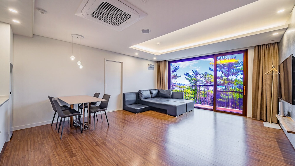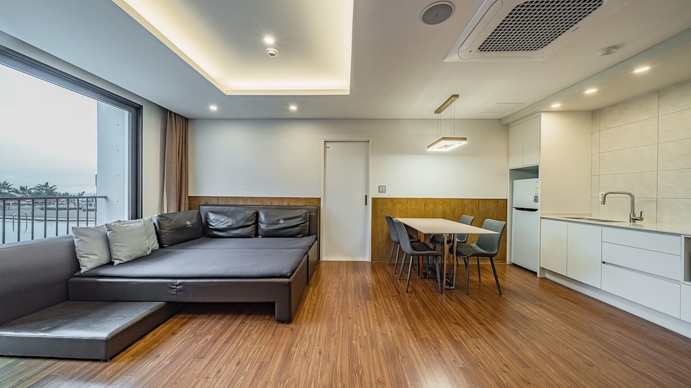 Met een verblijf bij Dam & Roo in Seogwipo, in de buurt Jungmun, bevind je je op een kwartiertje rijden van Hello Kitty Island en Yakcheonsa-tempel. Dit hotel ligt op 18,7 km van Jeju Shinhwa World en op 14,3 km van Seogwipo Maeil Olle-markt. Trakteer jezelf op een verblijf in één van de 39 individueel gedecoreerde kamers met een privéspa binnen en een lcd-televisie. De kitchenettes beschikken over een magnetron. Dankzij gratis wifi blijf je online, terwijl de tv met digitale zenders zorgt voor het kijkplezier. Bij de voorzieningen horen een zitruimte en een waterkoker. Afstanden worden weergegeven tot op 0,1 mijl en kilometer.