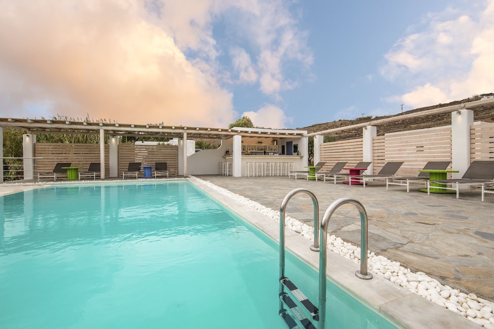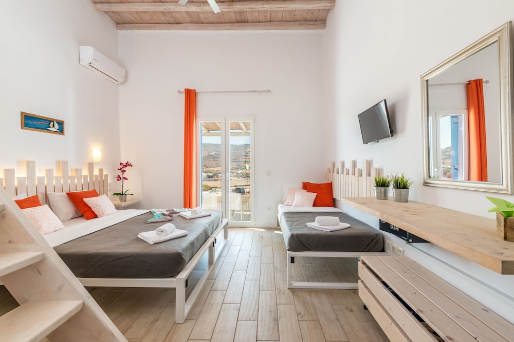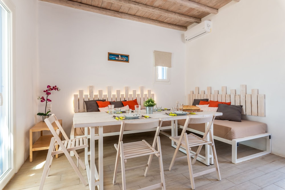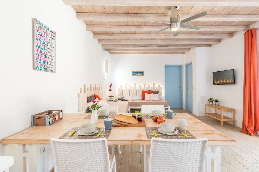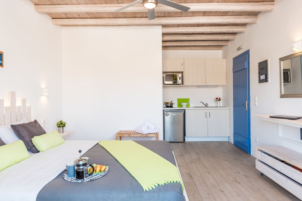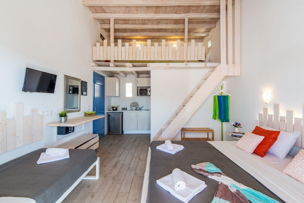 Electra Village ligt in Mykonos in de buitenwijken, op 10 min. rijden van Windmolens van Mykonos en Strand van Elia. Deze villa voor families ligt op 4,5 km van Super Paradise Beach en op 6,1 km van Strand van Kalafatis. Trakteer jezelf op een verblijf in één van de 14 individueel gedecoreerde kamers met keukens. Alle kamers hebben een gemeubileerd balkon of terras. Terwijl gratis wifi je online houdt, zorgt de flatscreentelevisie van 32 inch voor je kijkplezier. Bij de voorzieningen horen een kluis en een koelkast en de kamers worden dagelijks schoongemaakt. Afstanden worden weergegeven tot op 0,1 mijl en kilometer.
