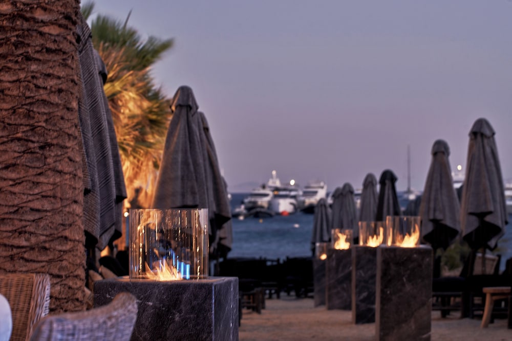 Wanneer je verblijft bij O by Myconian, Mykonos, a Member of Design Hotels in Mykonos, bevind je je aan het strand, in de buurt van Strand van Bophut en op 5 min. rijden van Oude Haven van Mykonos. Dit hotel bij het strand ligt op 6,3 km van Nieuwe Haven van Mykonos en op 6,5 km van Paradijsstrand. Doe of je thuis bent in één van de 65 individueel gedecoreerde kamers met een minibar en een flatscreentelevisie. Je bed met pillowtop matras komt met donzen dekbedden en Italiaanse Frette-lakens. Alle kamers hebben een gemeubileerd balkon of terras. Dankzij gratis wifi blijf je online, terwijl de tv met satellietzenders zorgt voor het kijkplezier. De privébadkamers met een douche hebben een regendouche en designer toiletartikelen. Afstanden worden weergegeven tot op 0,1 mijl en kilometer.