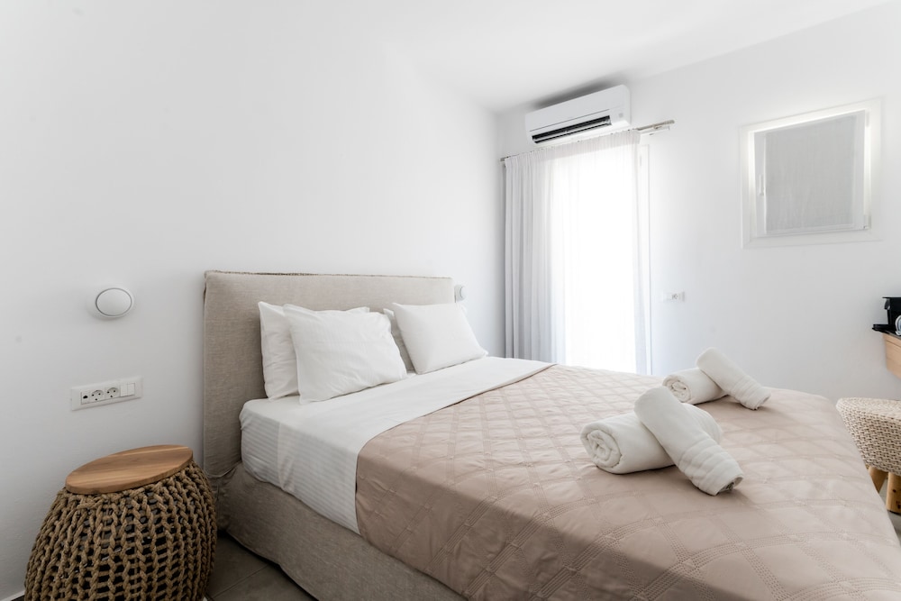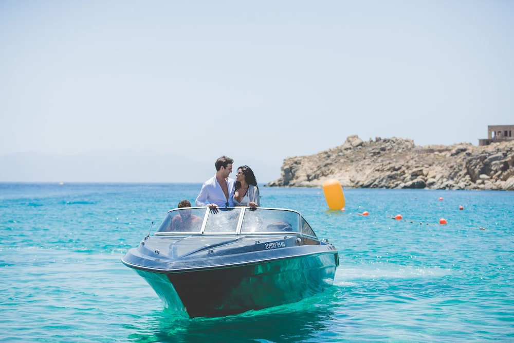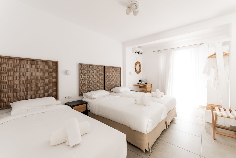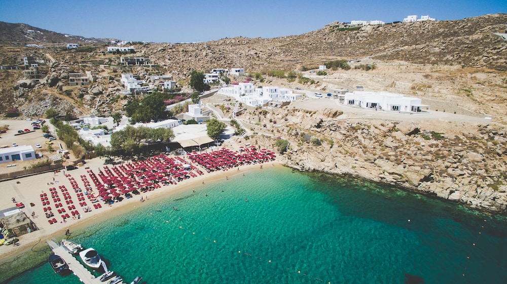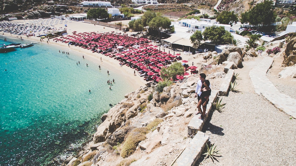 Met een verblijf bij Super Paradise Hotel in Mykonos bevind je je op een kwartiertje rijden van Oude Haven van Mykonos en Nieuwe Haven van Mykonos. Dit hotel ligt op 0,1 km van Super Paradise Beach en op 6,9 km van Paradijsstrand. Doe of je thuis bent in één van de 40 klimaatgeregelde kamers met een minibar en een flatscreentelevisie. Dankzij gratis wifi blijf je online, terwijl de tv met satellietzenders zorgt voor het kijkplezier. De privébadkamers met een douche hebben gratis toiletartikelen en pantoffels. Bij de voorzieningen horen een kluis en een strijkplank/strijkijzer en de kamers worden dagelijks schoongemaakt. Afstanden worden weergegeven tot op 0,1 mijl en kilometer.