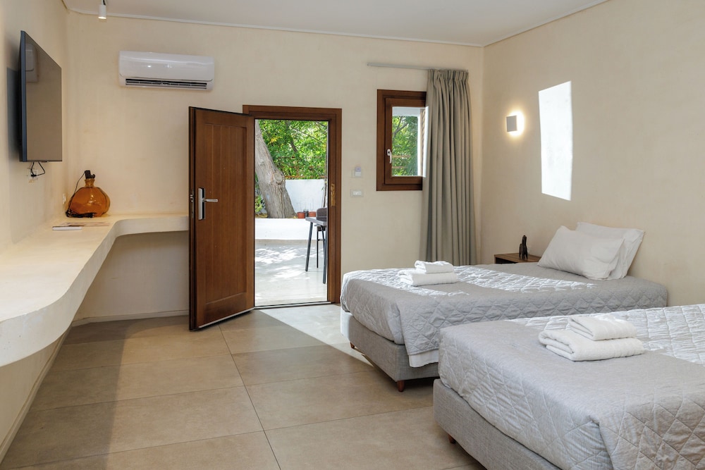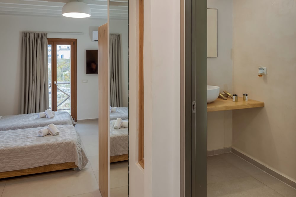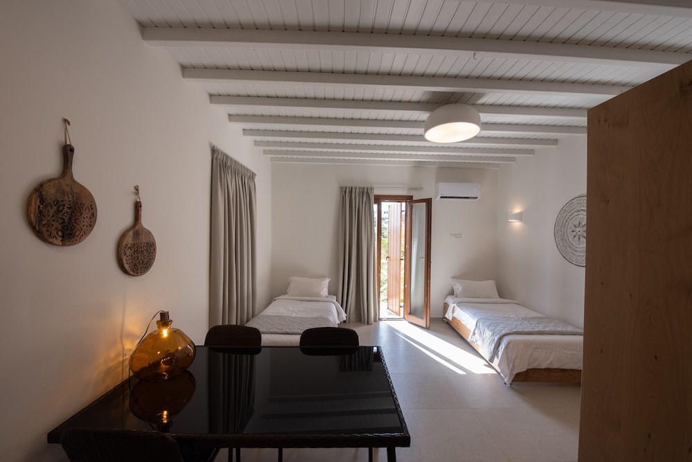 Wanneer je verblijft bij Edem Garden Residence by Estia in Mykonos bevind je je vlak bij het strand, op een kwartiertje lopen van Platis Gialos-strand en Strand van Psarou. Dit aparthotel ligt op 4,8 km van Oude Haven van Mykonos en op 7 km van Nieuwe Haven van Mykonos. Doe of je thuis bent in één van de 9 klimaatgeregelde kamers met kitchenettes. Alle kamers hebben een flatscreentelevisie van 12 inch met satellietzenders, terwijl je dankzij gratis wifi online blijft. Bij de voorzieningen horen een kluis en een waterkoker en de kamers worden dagelijks schoongemaakt. Afstanden worden weergegeven tot op 0,1 mijl en kilometer.