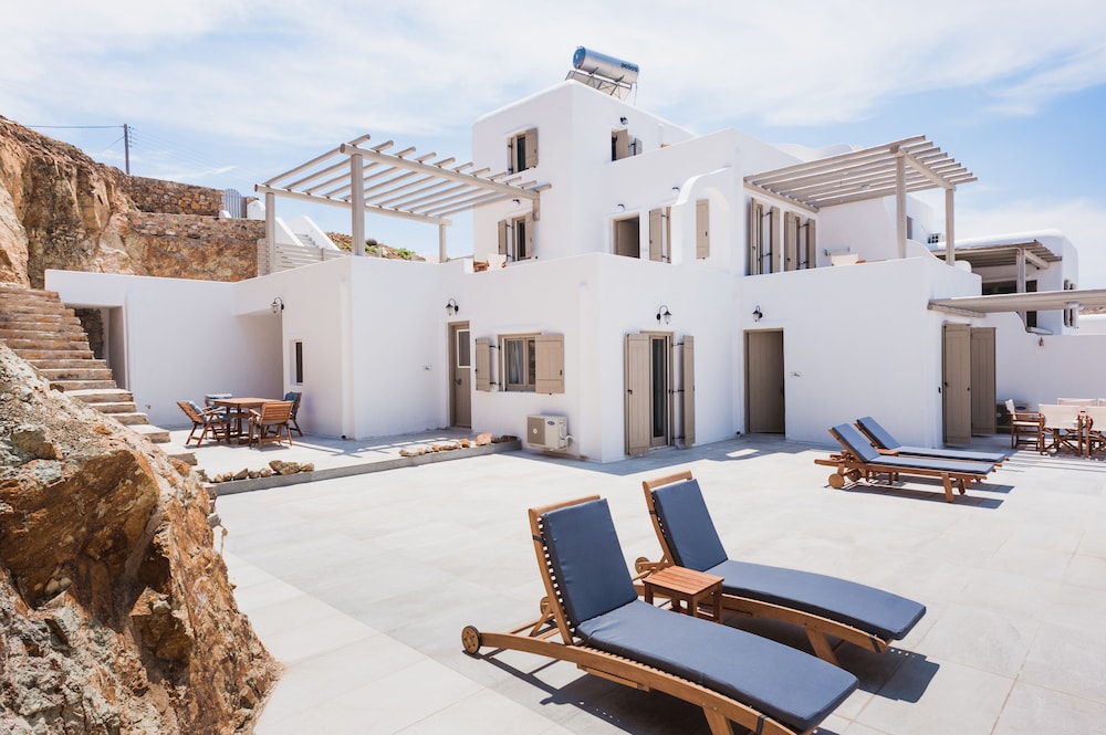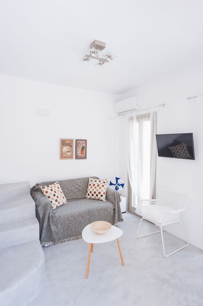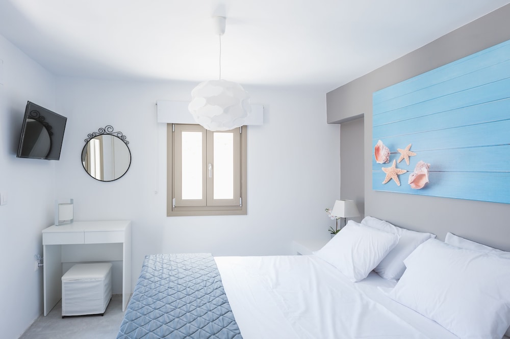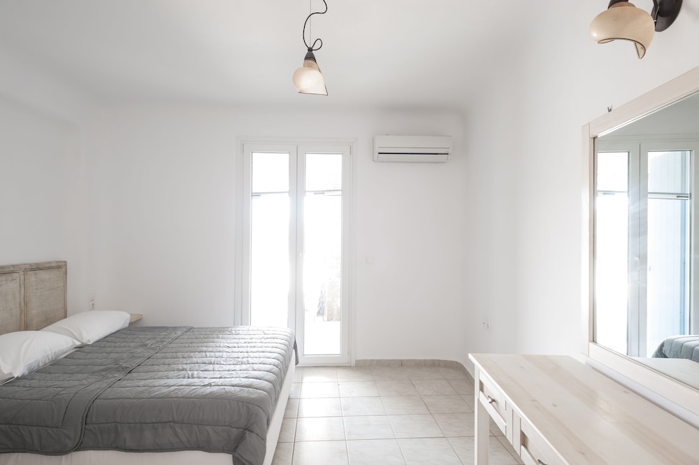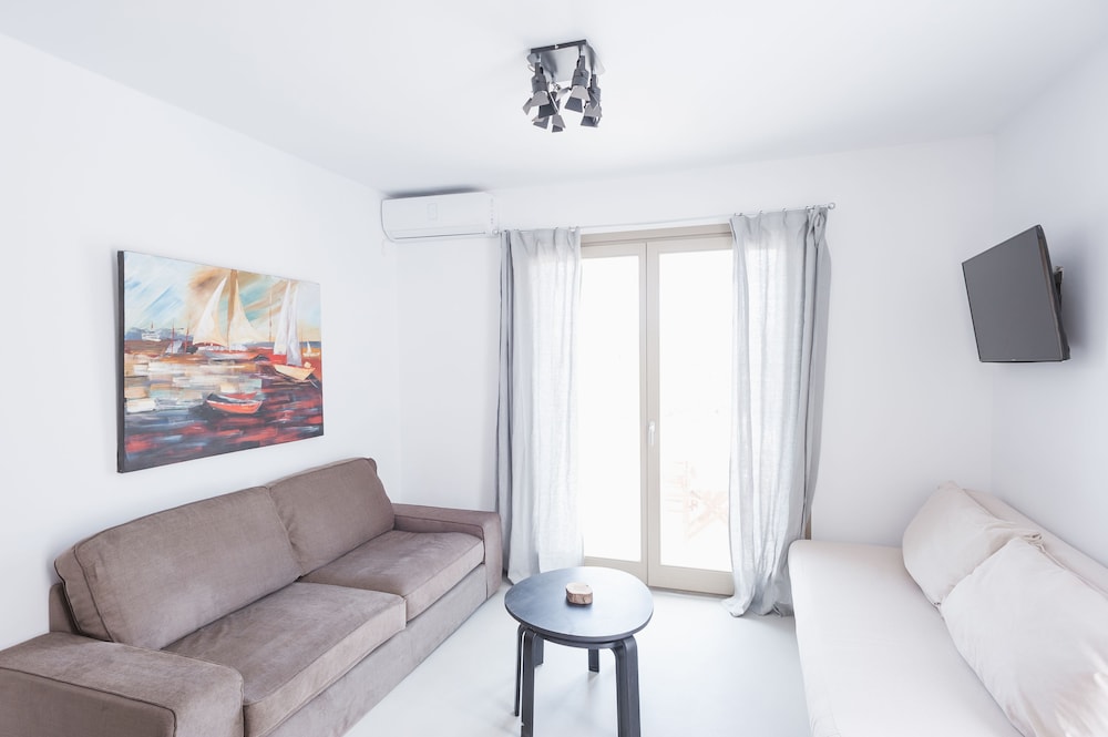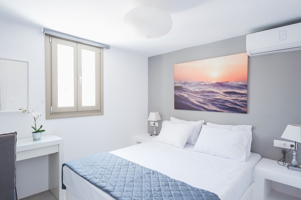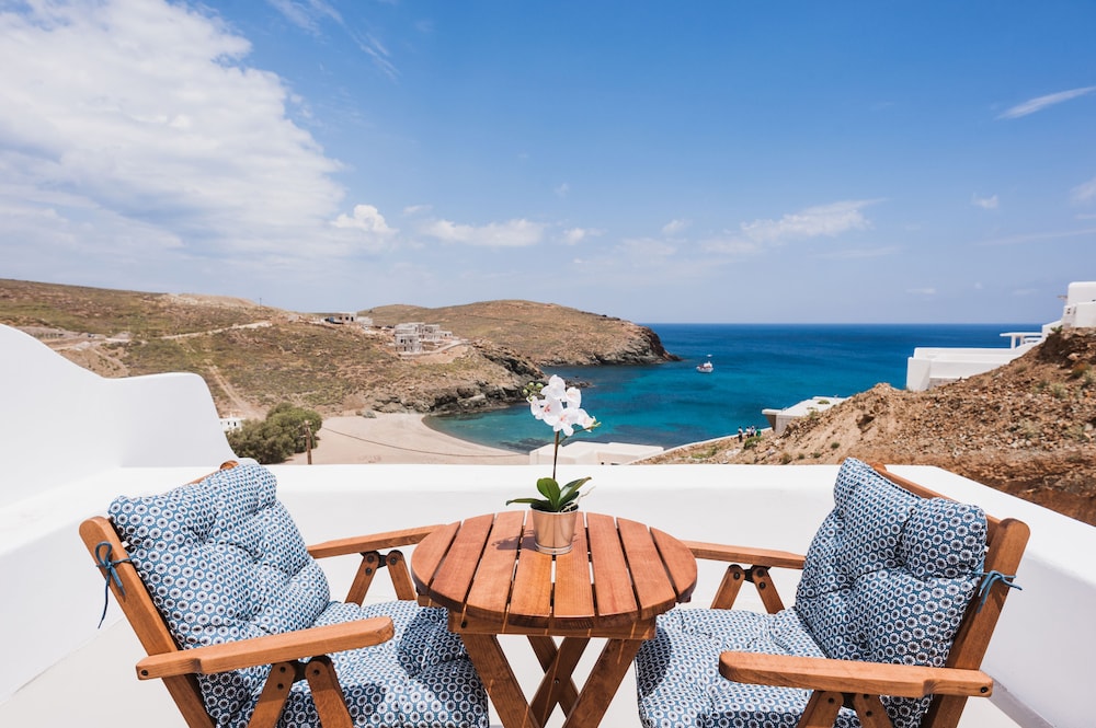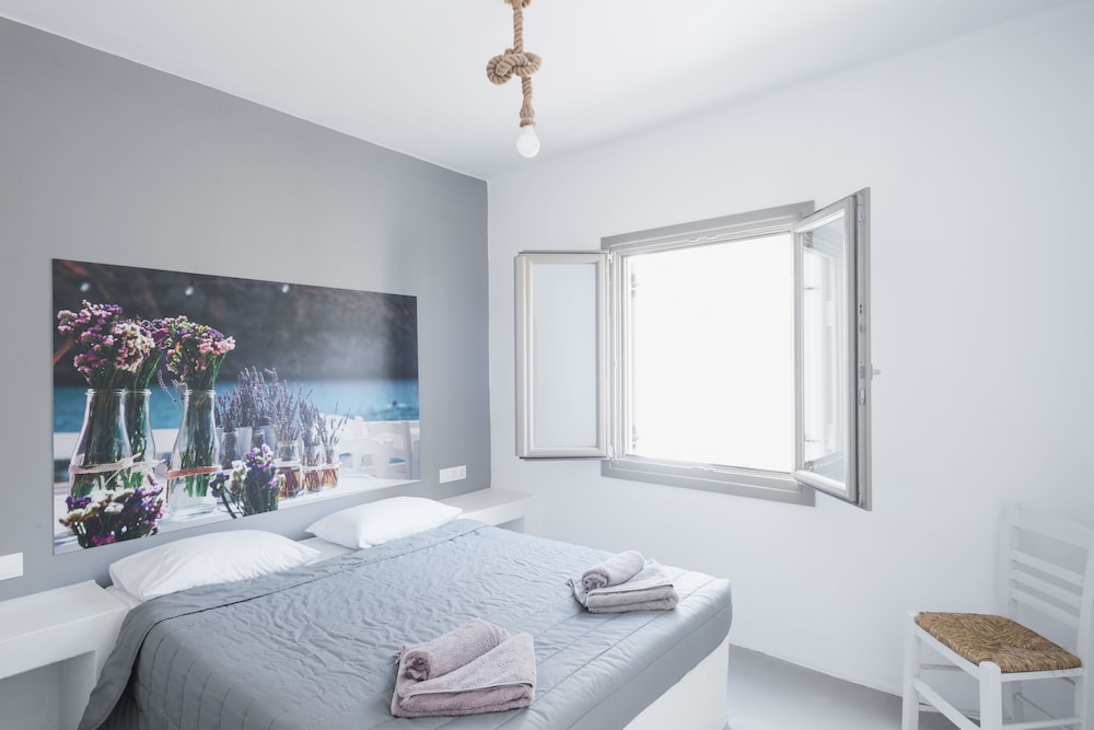 Sea Rock & Sky Private Residence ligt in Mykonos op 1 min. rijden van Merchiá Beach en op 7 min. van Mykonos Vioma Organic Farm. Dit pension bij het strand ligt op 13,3 km van Oude Haven van Mykonos en op 14,7 km van Nieuwe Haven van Mykonos. Doe of je thuis bent in één van de 2 klimaatgeregelde kamers met kitchenettes. De kamers hebben een plasmatelevisie met satellietzenders, terwijl je dankzij gratis wifi online blijft. Bij de voorzieningen horen een bureau en een koelkast en de kamers worden dagelijks schoongemaakt. Afstanden worden weergegeven tot op 0,1 mijl en kilometer.