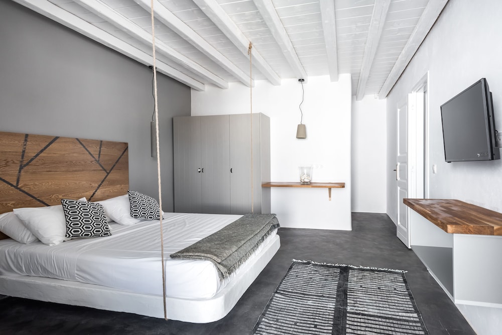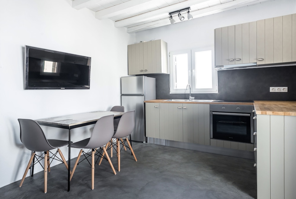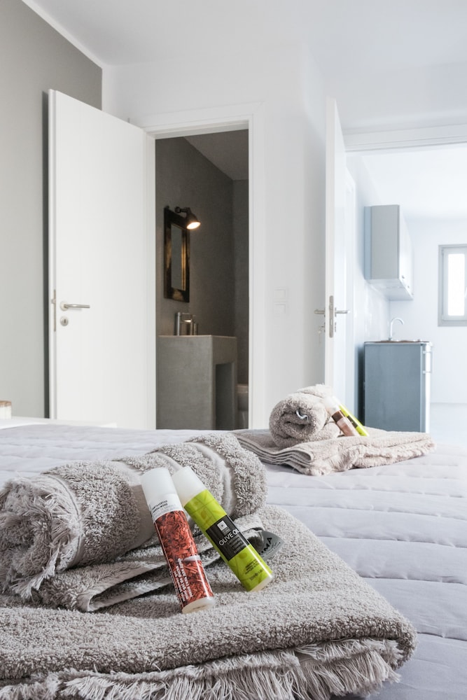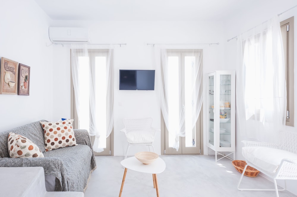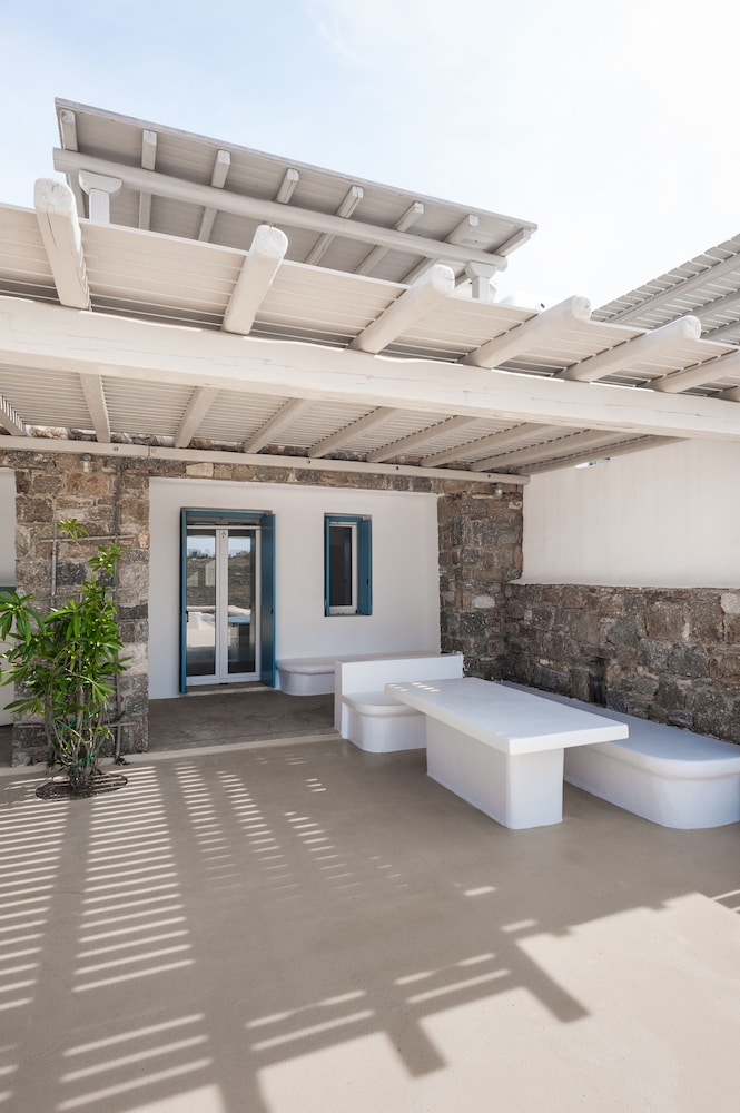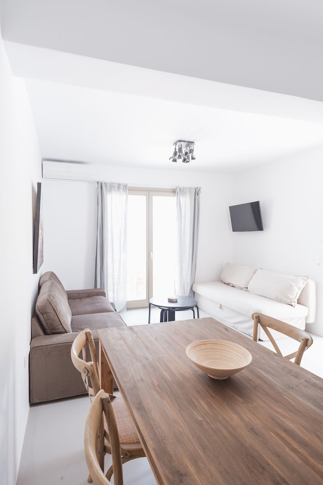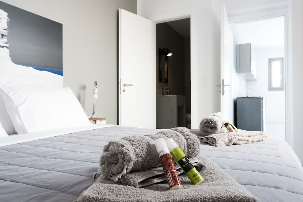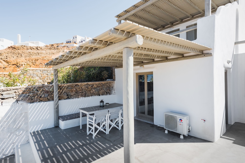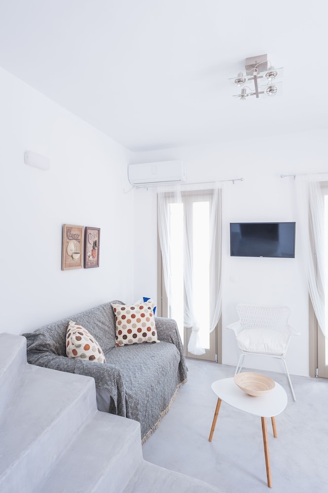Sea Rock & Sky Private Residence ligt in Mykonos op 1 min. rijden van Merchiá Beach en op 7 min. van Mykonos Vioma Organic Farm. Dit pension bij het strand ligt op 13,3 km van Oude Haven van Mykonos en op 14,7 km van Nieuwe Haven van Mykonos. Doe of je thuis bent in één van de 2 klimaatgeregelde kamers met kitchenettes. De kamers hebben een plasmatelevisie met satellietzenders, terwijl je dankzij gratis wifi online blijft. Bij de voorzieningen horen een bureau en een koelkast en de kamers worden dagelijks schoongemaakt. Afstanden worden weergegeven tot op 0,1 mijl en kilometer.