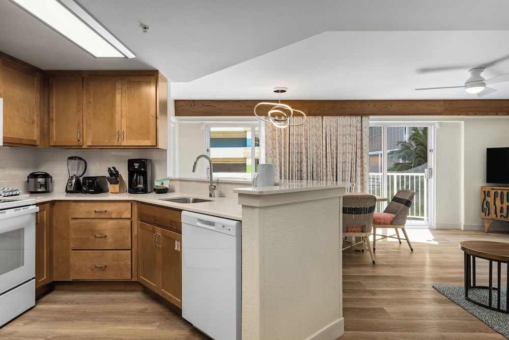 Wanneer je verblijft bij Club Wyndham at Waikiki Beach Walk, bevind je je in het hart van Honolulu, vlak bij Royal Hawaiian Center en Waikiki Beach Walk. Dit hotel ligt op 0,4 km van Waikiki Beach en op 0,6 km van International Market Place. Doe of je thuis bent in één van de 250 kamers met keukens, inclusief een koelkast en een magnetron. Alle kamers hebben een veranda. De privékitchenettes maken het eenvoudiger om je maaltijden bereiden. De kamers hebben een lcd-televisie met kabelzenders, terwijl je dankzij gratis wifi online blijft. Afstanden worden weergegeven tot op 0,1 mijl en kilometer.
