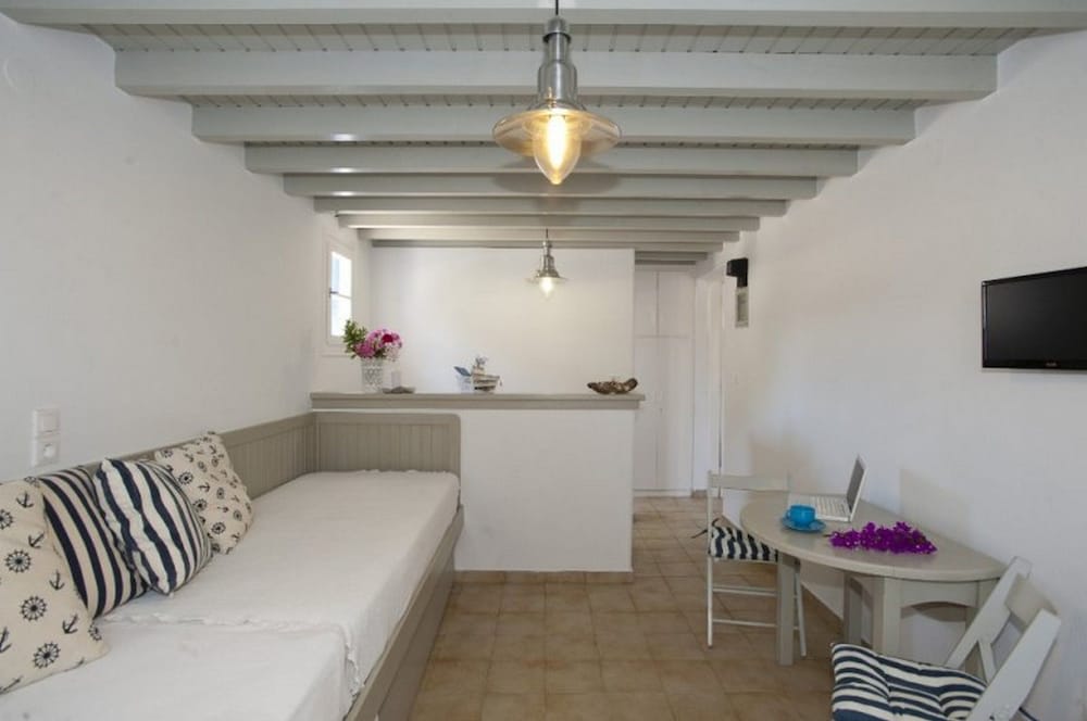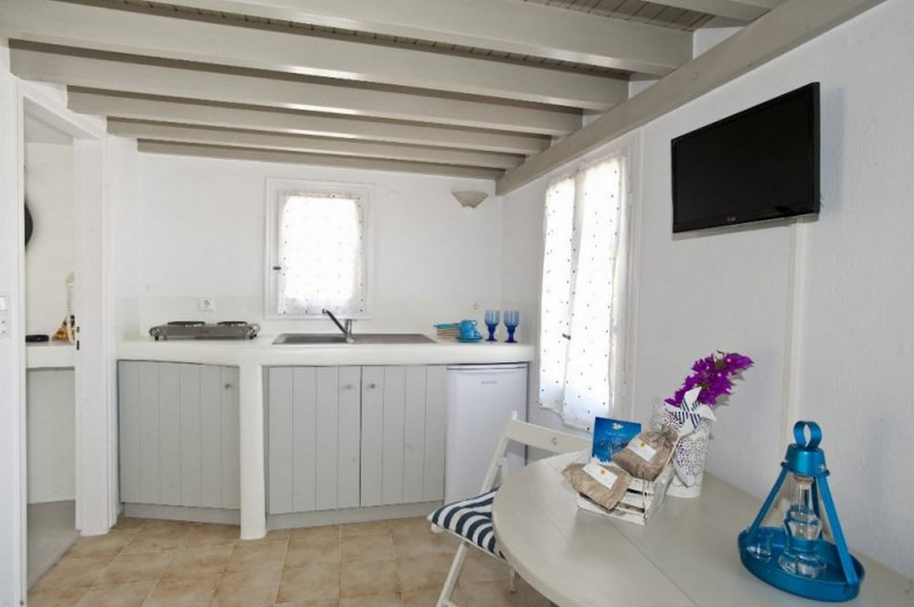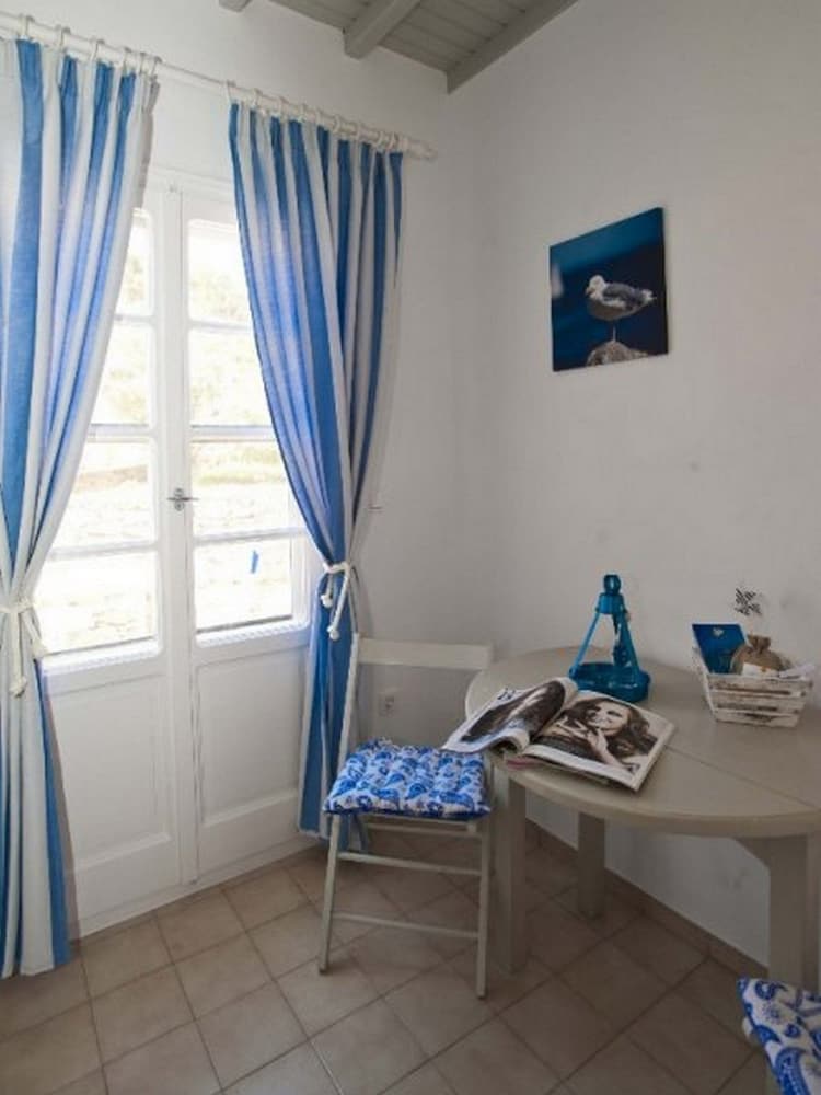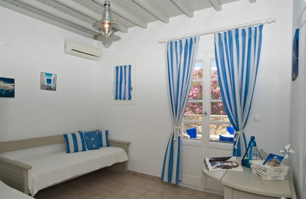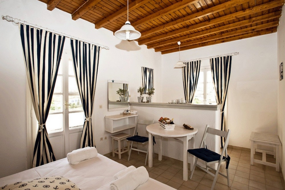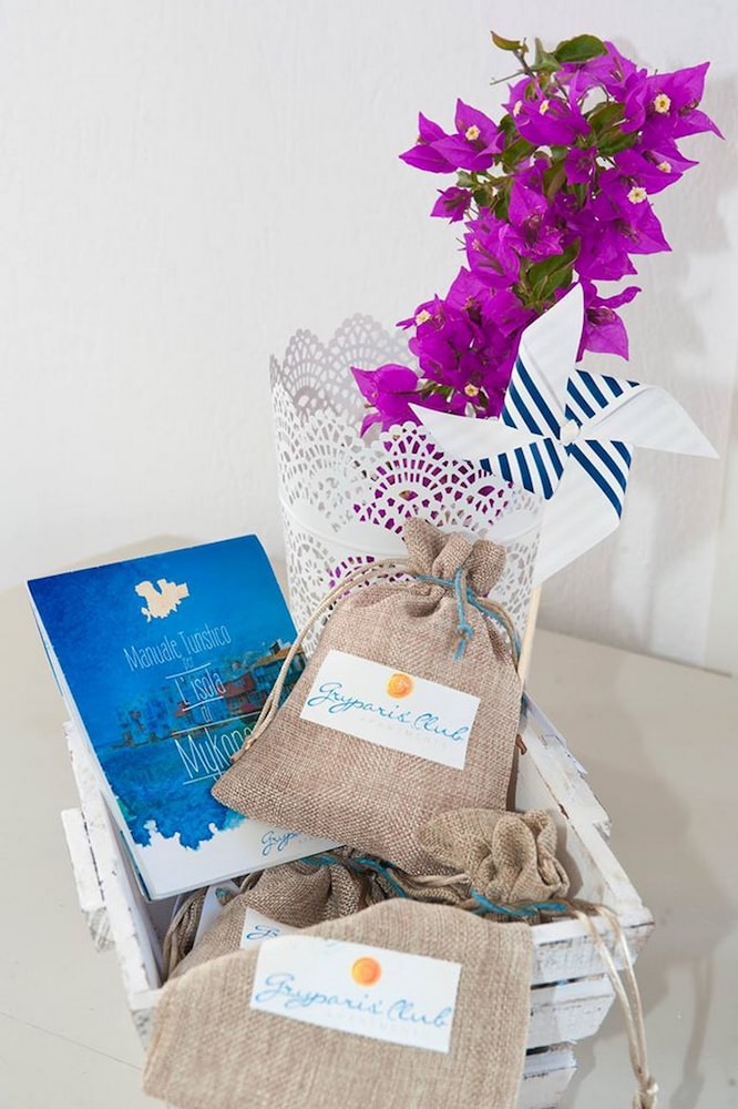 Wanneer je verblijft bij Gryparis Club Apartments in Mykonos bevind je je vlak bij het strand, op 5 min. rijden van Oude Haven van Mykonos en Windmolens van Mykonos. Dit pension ligt op 4,8 km van Nieuwe Haven van Mykonos en op 2 km van Strand van Bophut. Doe of je thuis bent in één van de 9 kamers met kitchenettes, inclusief een koelkast en een kookplaat. Alle kamers hebben een gemeubileerd balkon of terras. Terwijl gratis wifi je online houdt, zorgt de flatscreentelevisie van 14 inch voor je kijkplezier. Bij de voorzieningen horen een kluis en een koffiezetapparaat/waterkoker en de kamers worden dagelijks schoongemaakt. Afstanden worden weergegeven tot op 0,1 mijl en kilometer.