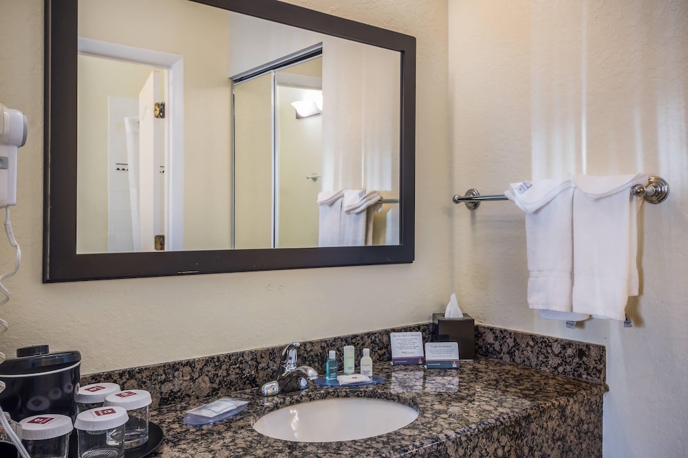 Met een verblijf bij Clarion Inn & Suites Central Clearwater Beach in Clearwater bevind je je in de buitenwijken, op een kwartiertje lopen van Congo River Golf - Clearwater en St Petersburg College. Dit hotel ligt op 1,1 km van BayCare Ballpark en op 1,5 km van Vrana Lake Nature Park. Doe of je thuis bent in één van de 147 kamers met een koelkast en een smart-tv. Je kamer beschikt over een bed met pillowtop matras. Dankzij gratis wifi blijf je online, terwijl de tv met kabelzenders zorgt voor het kijkplezier. De privébadkamers met een bad/douchecombinatie hebben gratis toiletartikelen en haardrogers. Afstanden worden weergegeven tot op 0,1 mijl en kilometer.