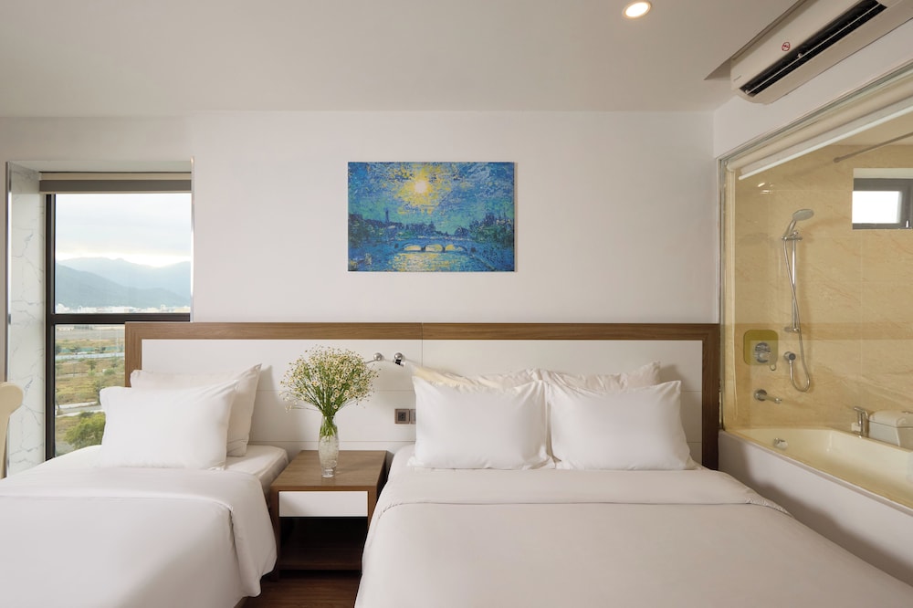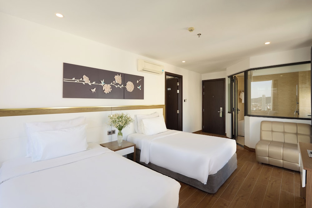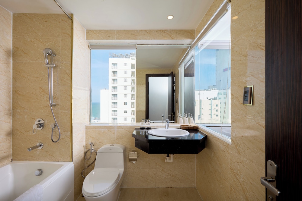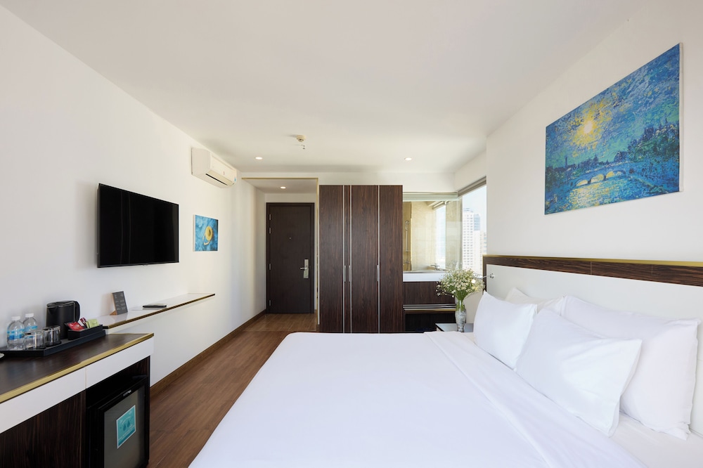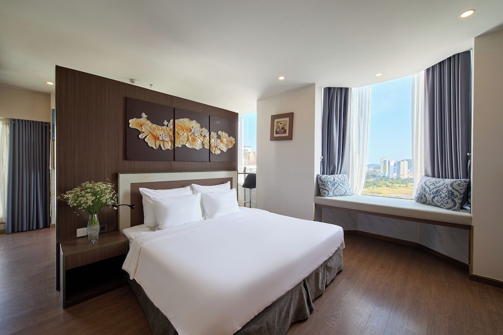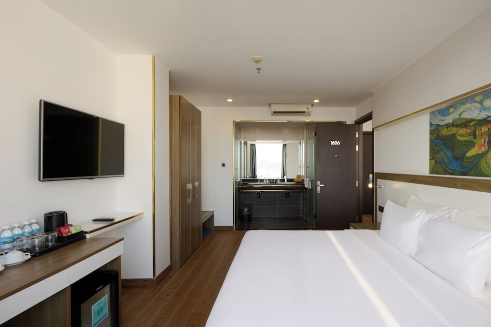 Met een verblijf bij The Sol Hotel in Nha Trang, in de buurt Tran Phu-strand, bevind je je op 5 min. rijden van Nha Trang Night Market en Louisiane Brewhouse (brouwerij). Dit hotel bij het strand ligt op 1,5 km van April 2 Square (plein) en op 1,7 km van Tram Huong-toren. Doe of je thuis bent in één van de 99 klimaatgeregelde kamers met een open haard en een lcd-televisie. Dankzij gratis wifi blijf je online, terwijl de tv met kabelzenders zorgt voor het kijkplezier. Bij de voorzieningen horen een telefoon, net zoals een kluis en een bureau. Afstanden worden weergegeven tot op 0,1 mijl en kilometer.