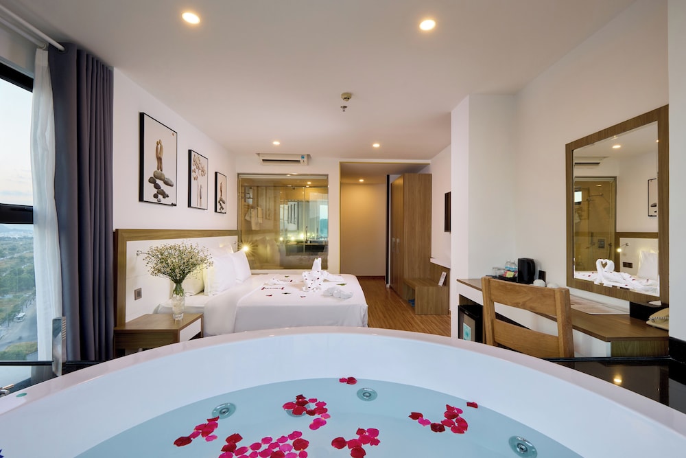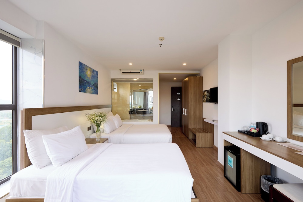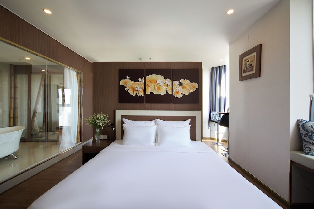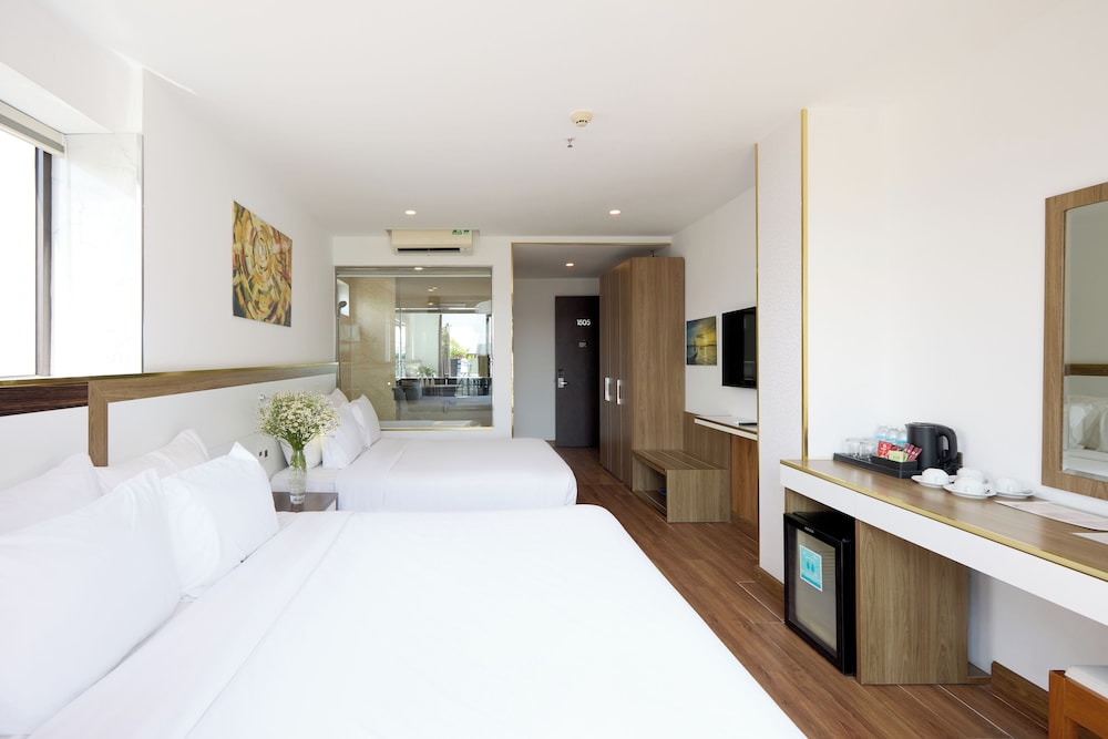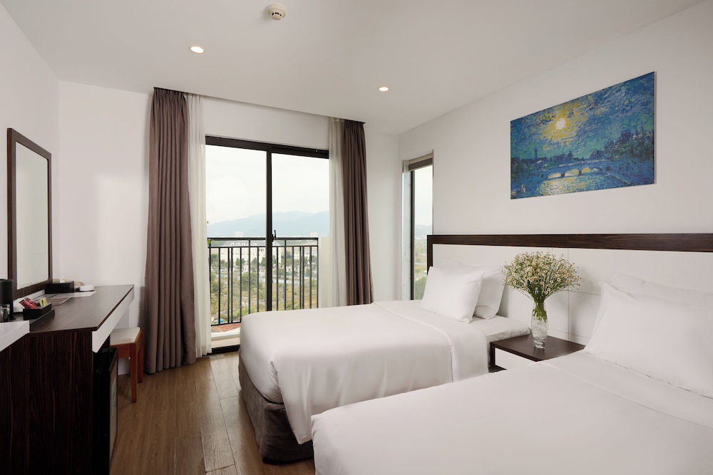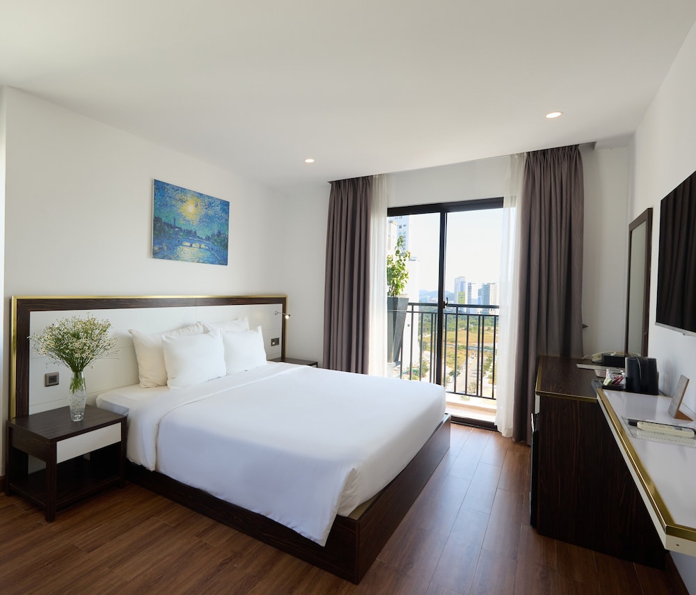 Met een verblijf bij The Sol Hotel in Nha Trang, in de buurt Tran Phu-strand, bevind je je op 5 min. rijden van Nha Trang Night Market en Louisiane Brewhouse (brouwerij). Dit hotel bij het strand ligt op 1,5 km van April 2 Square (plein) en op 1,7 km van Tram Huong-toren. Doe of je thuis bent in één van de 99 klimaatgeregelde kamers met een open haard en een lcd-televisie. Dankzij gratis wifi blijf je online, terwijl de tv met kabelzenders zorgt voor het kijkplezier. Bij de voorzieningen horen een telefoon, net zoals een kluis en een bureau. Afstanden worden weergegeven tot op 0,1 mijl en kilometer.