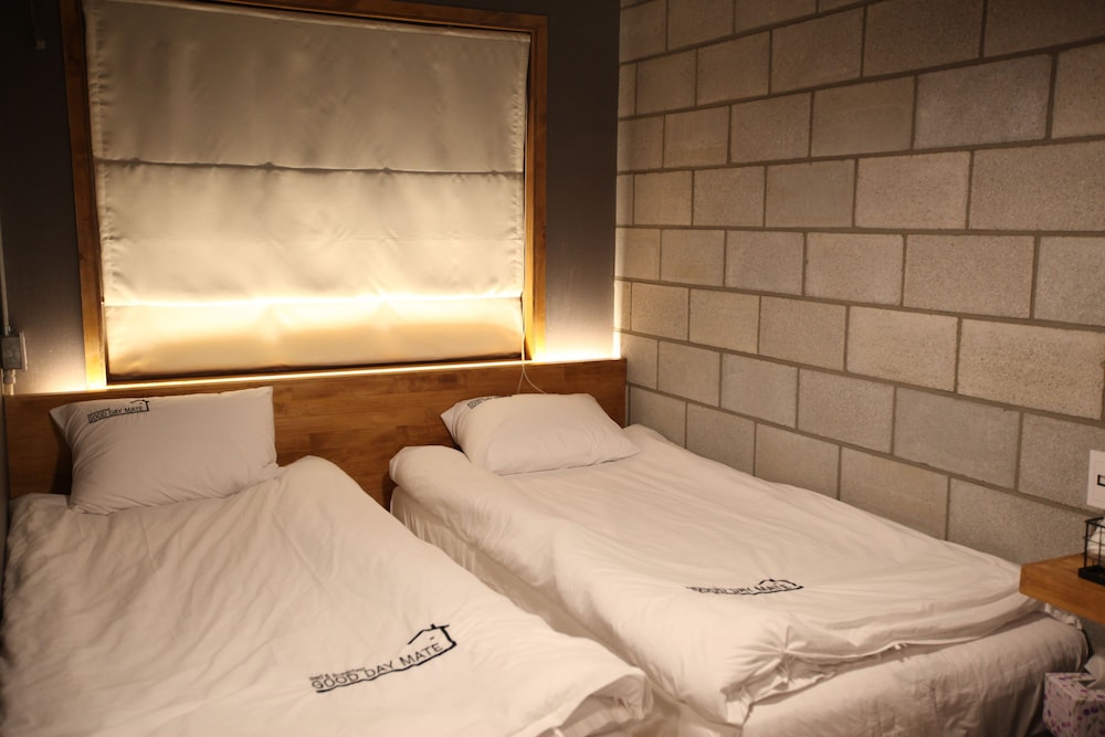 Good Day Mate Hostel bevindt zich in Busan, in Haeundae, op 10 min. lopen van Strand van Haeundae en Paradise Casino. Dit pension ligt op 3,4 km van Stadscentrum en op 4,6 km van Strand van Gwangalli. Doe of je thuis bent in één van de 11 kamers met een koelkast. Maak je maaltijden klaar in de gemeenschappelijke keuken. Er is gratis wifi op de kamer als je op het internet wilt surfen. De privébadkamers met een douche hebben gratis toiletartikelen en haardrogers. Afstanden worden weergegeven tot op 0,1 mijl en kilometer.