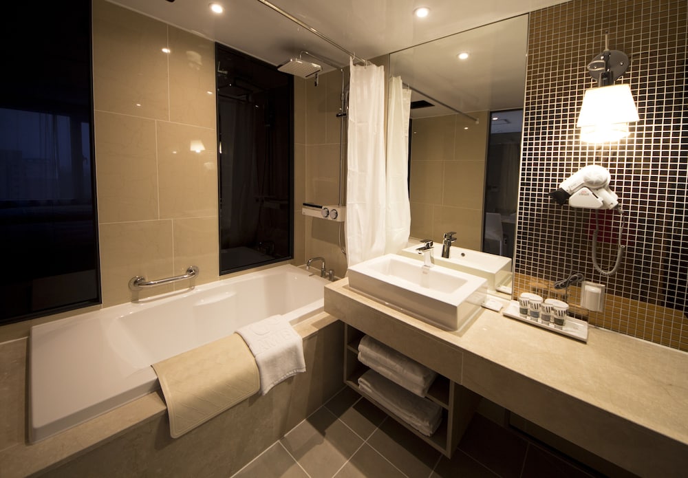 Met een verblijf bij The First70 Hotel in Seogwipo, in de buurt Seogwipo-Stad, bevind je je op slechts 5 min. rijden van Seogwipo Maeil Olle-markt en Waterval van Cheonjiyeon. Dit hotel ligt op 7 km van Jeju World Cup-stadion en op 7,1 km van Jeju Waterwereld. Doe of je thuis bent in één van de 236 klimaatgeregelde kamers met vloerverwarming en een flatscreentelevisie. Dankzij gratis wifi blijf je online, terwijl de tv met kabelzenders zorgt voor het kijkplezier. Bij de voorzieningen horen een kluis en gratis mineraalwater en de kamers worden dagelijks schoongemaakt. Afstanden worden weergegeven tot op 0,1 mijl en kilometer.