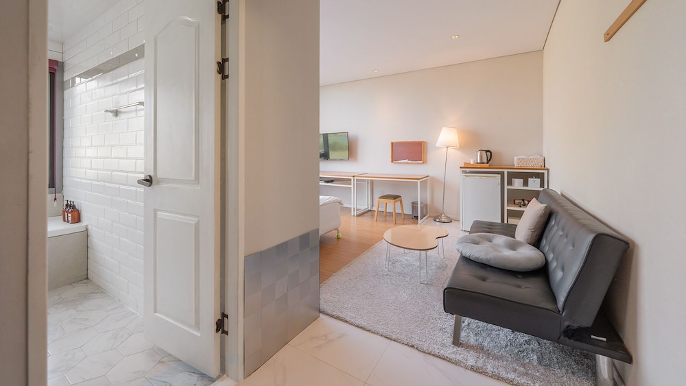 Met een verblijf bij Lucid M in Seogwipo, in de buurt Andeok, bevind je je op 15 min. rijden van Sanbangsan-berg en Hello Kitty Island. Dit hotel ligt op 12,6 km van Jeju Shinhwa World en op 21,7 km van Strand van Hyeopjae. Doe of je thuis bent in één van de 12 klimaatgeregelde kamers met een koelkast en een flatscreentelevisie. Dankzij gratis wifi blijf je online, terwijl de tv met kabelzenders zorgt voor het kijkplezier. De privébadkamers met een douche hebben gratis toiletartikelen en bidets. Bij de voorzieningen horen gratis mineraalwater en verduisterende gordijnen en de kamers worden op beperkte dagen schoongemaakt. Afstanden worden weergegeven tot op 0,1 mijl en kilometer.