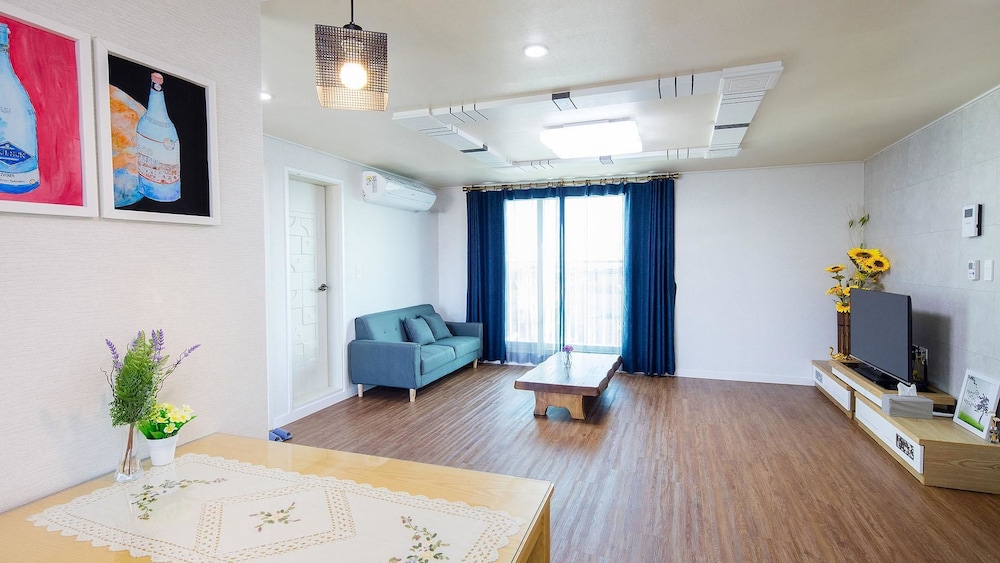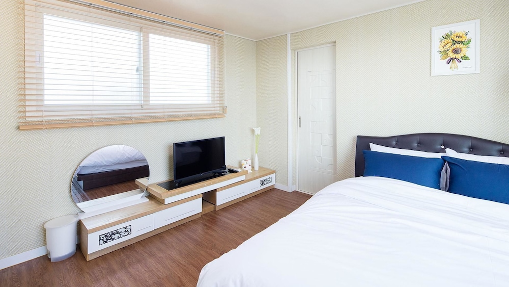 Met een verblijf bij My Bom in Seogwipo, in Andeok, bevind je je op 3 min. rijden van Sanbangsan-berg en op 7 min. van Hello Kitty Island. Dit pension ligt op 13,6 km van Jeju Shinhwa World en op 22,4 km van Strand van Hyeopjae. Doe of je thuis bent in één van de 8 kamers met kitchenettes. Wifi of kabelinternet is gratis terwijl de flatscreentelevisie met kabelzenders je helpt bij het ontspannen. Bij de voorzieningen horen een koelkast en de kamers worden dagelijks schoongemaakt. Afstanden worden weergegeven tot op 0,1 mijl en kilometer.