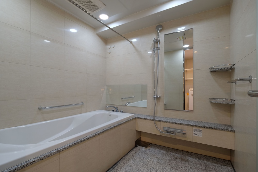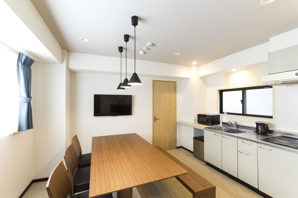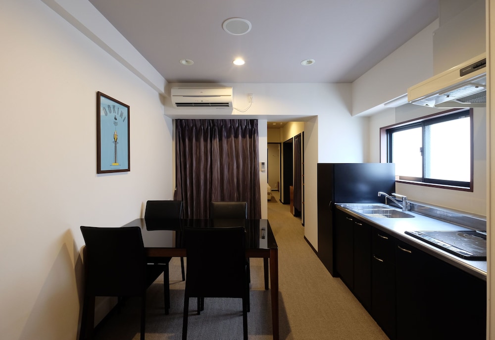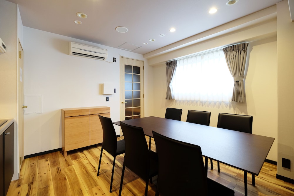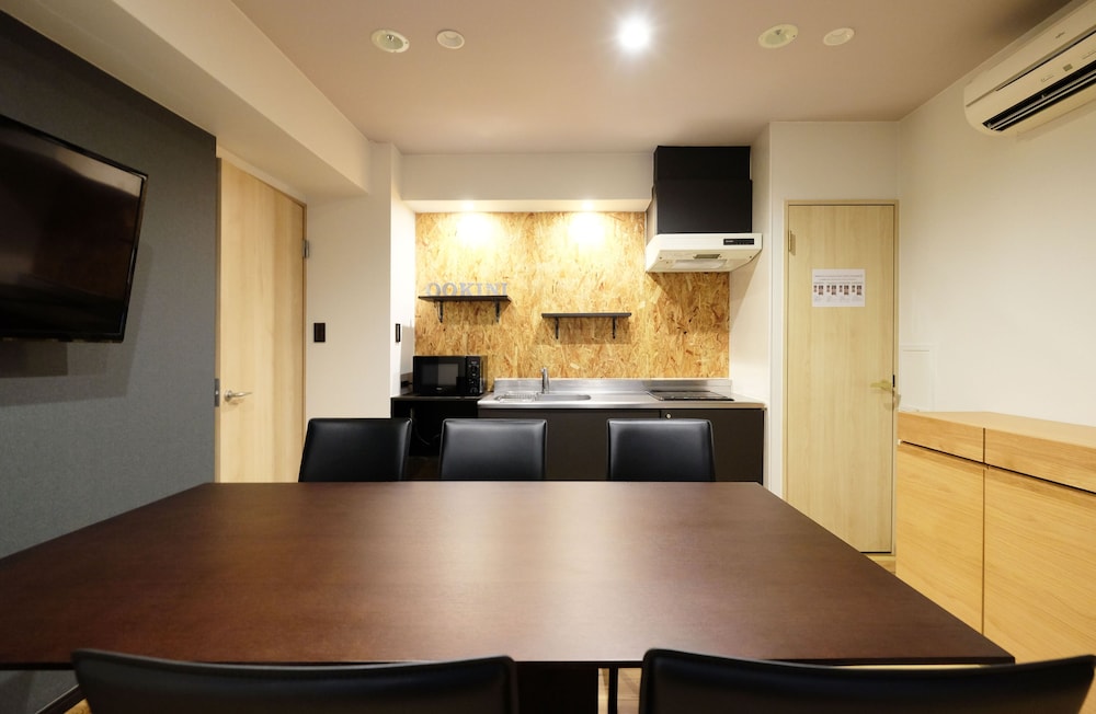 Met een verblijf bij Ookini Hotels Nipponbashi Apartment bevind je je centraal in Osaka, op 10 min. rijden van Nipponbashi en Dierentuin Tennoji. Dit appartement ligt op 3,7 km van Kyocera Dome Osaka en op 4,4 km van Kasteel van Osaka. Doe of je thuis bent in één van de 41 klimaatgeregelde kamers met kitchenettes, inclusief een koelkast en een magnetron. Alle kamers hebben een lcd-televisie van 40 inch met digitale zenders, terwijl je dankzij gratis wifi online blijft. De privébadkamers met aparte badkuipen en douches hebben elk diepe baden en haardrogers. Voorzieningen zijn bijvoorbeeld gratis mineraalwater en wasmachines, terwijl een strijkplank/strijkijzer aangevraagd kunnen worden. Afstanden worden weergegeven tot op 0,1 mijl en kilometer.