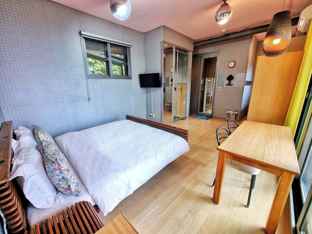 Met een verblijf bij OROJEJU in Seogwipo, in de buurt Namwon, bevind je je op een kwartiertje rijden van Seogwipo Maeil Olle-markt en Namwonkeuneong. Dit pension bij het strand ligt op 16,6 km van Strand van Pyoseon en op 9 km van Soesokkak Estuary. Trakteer jezelf op een verblijf in één van de individueel gedecoreerde kamers met een open haard en vloerverwarming. Je bed met Select Comfort matras komt met donzen dekbedden en lakens van Egyptisch katoen. Alle kamers hebben een gemeubileerd balkon of terras. De keukens beschikken over een koelkast, een kookplaat en een magnetron. Er is gratis wifi op de kamer als je op het internet wilt surfen. Afstanden worden weergegeven tot op 0,1 mijl en kilometer.