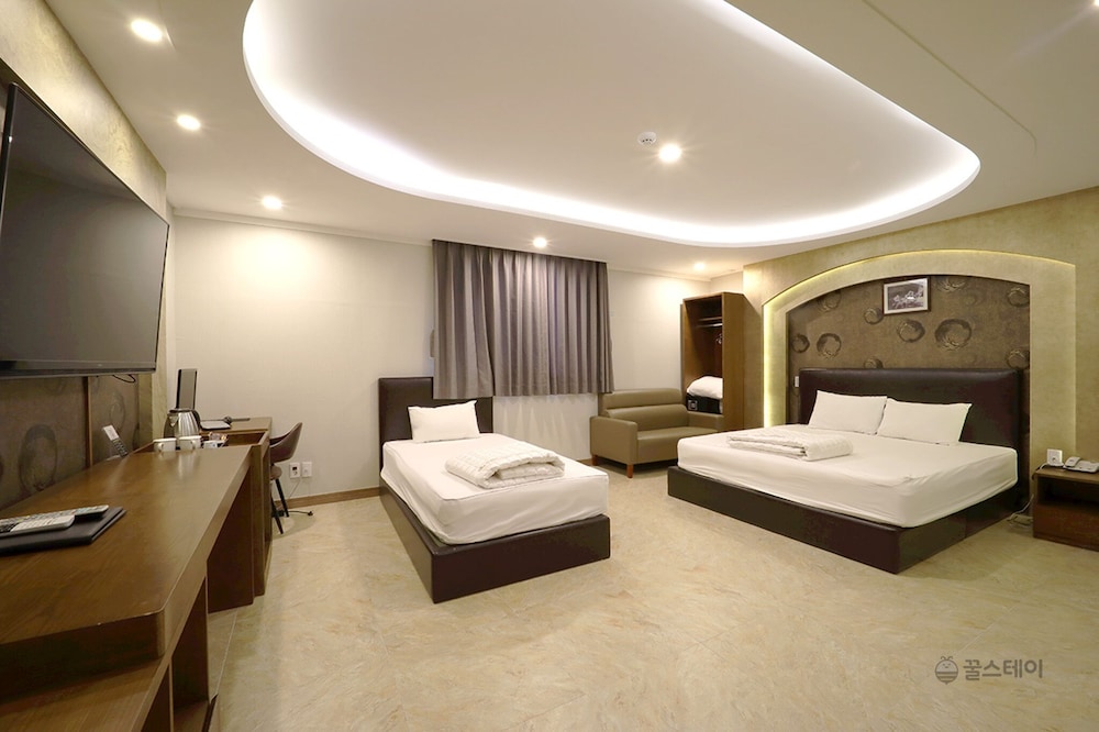 The King Hotel ligt in Busan, in de buurt Yeonje-gu, op 5 min. rijden van Stadscentrum en Expositie- en congrescomplex van Busan. Dit hotel ligt op 4,2 km van Strand van Gwangalli en op 6,4 km van Strand van Haeundae. Trakteer jezelf op een verblijf in één van de 68 individueel gedecoreerde kamers met vloerverwarming en een smart-tv. Dankzij gratis wifi blijf je online, terwijl de tv met digitale zenders zorgt voor het kijkplezier. De privébadkamers met aparte badkuipen en douches hebben elk diepe baden en gratis toiletartikelen. Bij de voorzieningen horen een bureau en een zitruimte en de kamers worden dagelijks schoongemaakt. Afstanden worden weergegeven tot op 0,1 mijl en kilometer.
