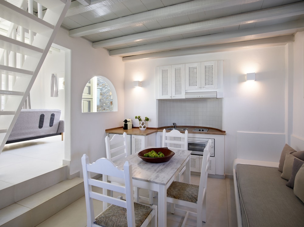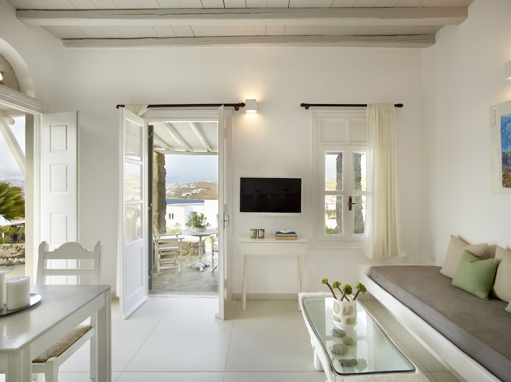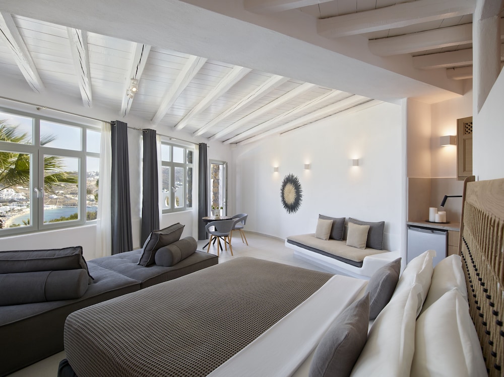 Wanneer je verblijft bij Kallos of Mykonos (previous Leonis Summer Houses) in Mykonos bevind je je vlak bij het strand, op 5 min. rijden van Windmolens van Mykonos en op 6 min. van Oude Haven van Mykonos. Dit hotel ligt op 7,2 km van Nieuwe Haven van Mykonos en op 1,6 km van Strand van Bophut. Doe of je thuis bent in één van de 10 individueel gedecoreerde kamers met een minibar en een flatscreentelevisie. Alle kamers hebben balkons of terrassen. Dankzij gratis wifi blijf je online, terwijl de tv met digitale zenders zorgt voor het kijkplezier. Alle badkamers beschikken over een douche met een regendouche en designer toiletartikelen. Afstanden worden weergegeven tot op 0,1 mijl en kilometer.