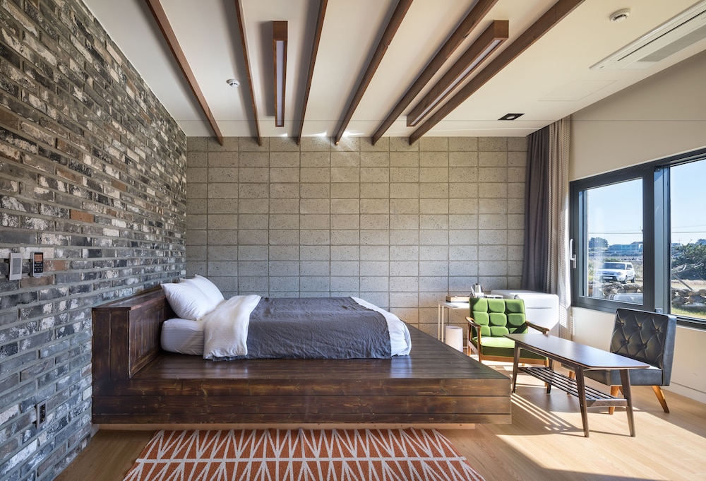 Met een verblijf bij Jimi Stay in Jeju, in de buurt Gujwa, bevind je je op 1 min. rijden van Hado Strand en op 9 min. van Sehwa-strand. Dit hotel ligt op 9 km van Algemene Passagiersterminal Seongsan Pohang en op 9,7 km van Seongsan Ilchulbong. Doe of je thuis bent in één van de 4 klimaatgeregelde kamers met een koelkast en een flatscreentelevisie. Dankzij gratis wifi blijf je online, terwijl de tv met kabelzenders zorgt voor het kijkplezier. De privébadkamers met een bad/douchecombinatie hebben designer toiletartikelen en haardrogers. Bij de voorzieningen horen een waterkoker en gratis mineraalwater en de kamers worden op beperkte dagen schoongemaakt. Afstanden worden weergegeven tot op 0,1 mijl en kilometer.