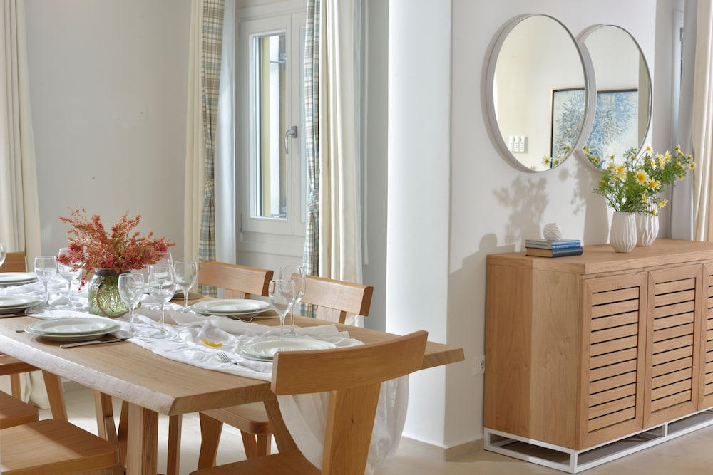 Wanneer je verblijft bij Jenny's Summer Houses in Mykonos bevind je je vlak bij het strand, op 5 min. rijden van Oude Haven van Mykonos en Windmolens van Mykonos. Dit pension ligt op 1,2 km van Strand van Psarou en op 6 km van Nieuwe Haven van Mykonos. Doe of je thuis bent in één van de 9 klimaatgeregelde kamers met een koelkast en een flatscreentelevisie. Op je kamer heb je een tv met kabelzenders die zorgt voor het kijkplezier. Badkamers hebben een douche en gratis toiletartikelen. Bij de voorzieningen horen een telefoon, net zoals een (laptop)kluis en een waterkoker. Afstanden worden weergegeven tot op 0,1 mijl en kilometer.