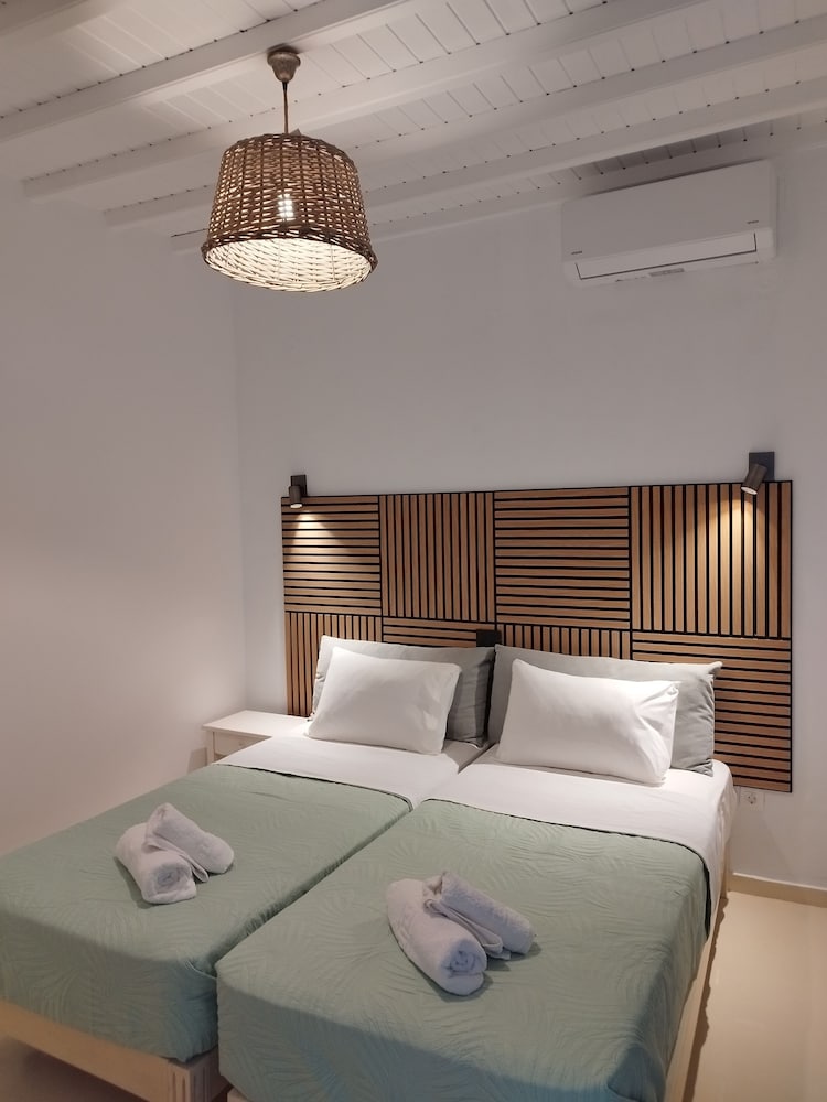 Wanneer je verblijft bij Nikos rooms in Mykonos bevind je je vlak bij het strand, op 5 min. rijden van Oude Haven van Mykonos en Windmolens van Mykonos. Dit pension ligt op 4,8 km van Nieuwe Haven van Mykonos en op 1,8 km van Strand van Bophut. Doe of je thuis bent in één van de 7 klimaatgeregelde kamers met een koelkast en een flatscreentelevisie. Alle kamers hebben balkons of terrassen. Er is gratis wifi op de kamer als je op het internet wilt surfen. Badkamers hebben een douche en haardrogers. Afstanden worden weergegeven tot op 0,1 mijl en kilometer.