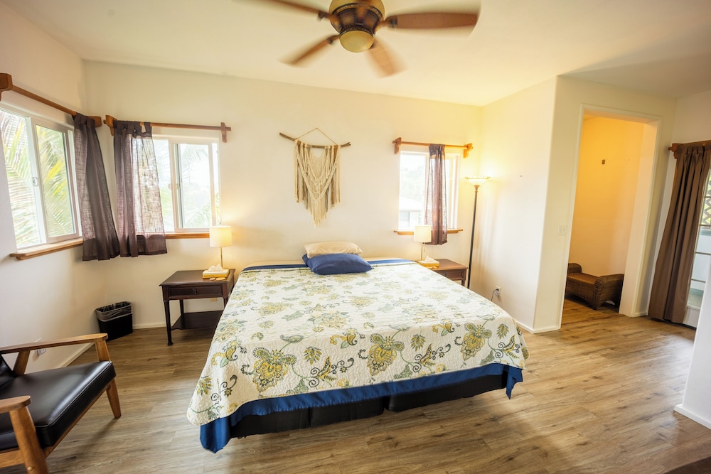 Met een verblijf bij Hilo Vacation Rental in Hilo, bevind je je in de bergen, op een kwartiertje van Port of Hilo en Kaumana Caves Park. Dit pension ligt op 0,4 km van Ainako Park en op 1,7 km van Gilbert Carvalho Park. Overnacht in één van de 11 kamers met een flatscreentelevisie. Dankzij gratis wifi blijf je online, terwijl de tv met kabelzenders zorgt voor het kijkplezier. Badkamers beschikken over gratis toiletartikelen en haardrogers. Afstanden worden weergegeven tot op 0,1 mijl en kilometer.