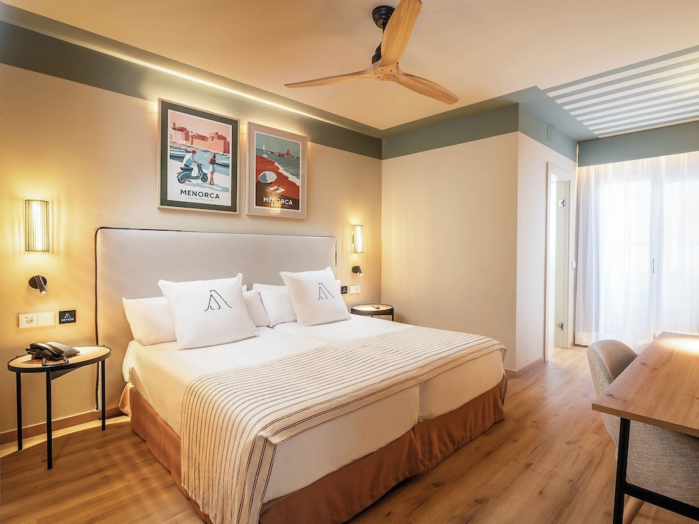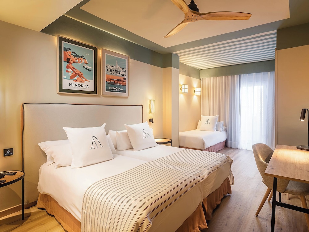 Met een verblijf bij ARTIEM Capri Hotel bevind je je in het hart van Mahón, op 3 min. rijden van Haven van Mahón en op 5 min. van Talaiot-ruïnes. Dit hotel met een spa ligt op 10,2 km van Splash Sur Menorca en op 12,6 km van Cala en Porter Beach. Doe of je thuis bent in één van de 75 klimaatgeregelde kamers met een minibar en een flatscreentelevisie. Dankzij gratis wifi blijf je online, terwijl de tv met kabelzenders zorgt voor het kijkplezier. Badkamers beschikken over gratis toiletartikelen en haardrogers. Bij de voorzieningen horen een telefoon, net zoals een kluis en een bureau. Afstanden worden weergegeven tot op 0,1 mijl en kilometer.