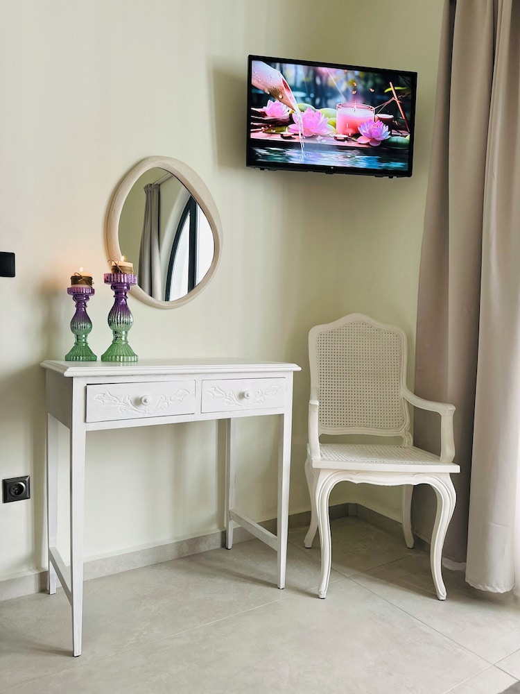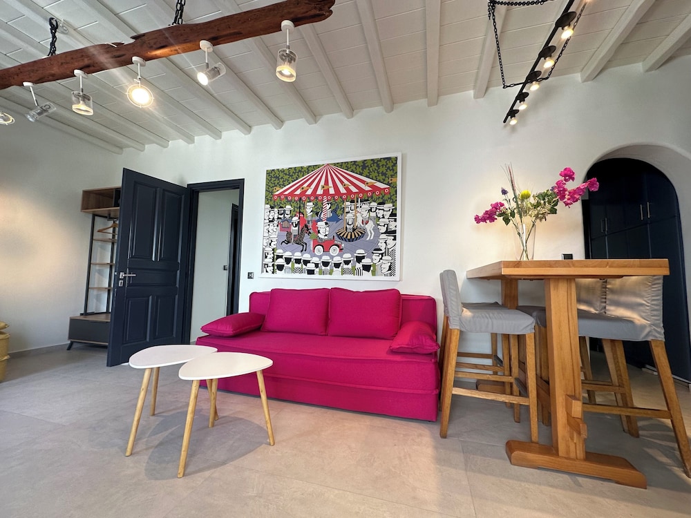 Wanneer je verblijft bij GT Suites in Mykonos, bevind je je bij de zee, in de buurt van Strand van Bophut en op 5 min. rijden van Oude Haven van Mykonos. Dit pension voor families ligt op 6,4 km van Nieuwe Haven van Mykonos en op 6,5 km van Paradijsstrand. Doe of je thuis bent in één van de 6 klimaatgeregelde kamers met keukens, inclusief een koelkast en een kookplaat. Alle kamers hebben een gemeubileerd balkon of terras. Alle kamers hebben een flatscreentelevisie van 37 inch met digitale zenders, terwijl je dankzij gratis wifi online blijft. Bij de voorzieningen horen een zitruimte en een koffiezetapparaat/waterkoker en de kamers worden dagelijks schoongemaakt. Afstanden worden weergegeven tot op 0,1 mijl en kilometer.