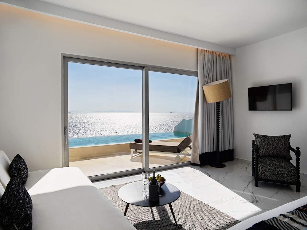 Met een verblijf bij Kouros Hotel & Suites bevind je je centraal in Mykonos. Tourlos Beach en Archeologisch museum van Mykonos liggen op 10 min. lopen. Dit hotel voor families ligt op 2,2 km van Egeïsch Zeevaartmuseum en op 2,3 km van Windmolens van Mykonos. Doe of je thuis bent in één van de 49 kamers met een koelkast en een lcd-televisie. Je bed met traagschuim matras komt met lakens van Egyptisch katoen. Alle kamers hebben balkons of terrassen. Dankzij gratis wifi blijf je online, terwijl de tv met satellietzenders zorgt voor het kijkplezier. Badkamers beschikken over een douche, designer toiletartikelen en bidets. Afstanden worden weergegeven tot op 0,1 mijl en kilometer.
