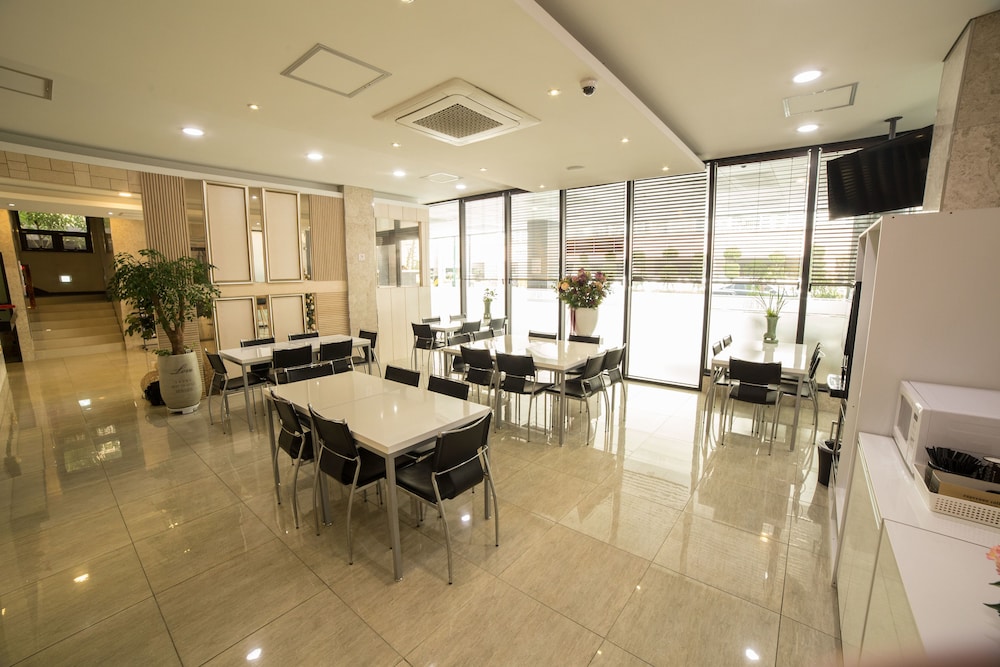 Enkele van de voorzieningen zijn een computerstation, een snelle incheckservice en een 24-uurs receptie. Ter plaatse heb je een gratis valetparkeerservice. Maak gebruik van handige voorzieningen zoals gratis wifi, conciërgeservices en een televisie in de gemeenschappelijke ruimte. Gasten van Reve Hotel Jeju kunnen genieten van een deugddoende maaltijd in het restaurant. Dagelijks kun je tegen betaling genieten van een lekker continentaal ontbijt, dat geserveerd wordt van 07.00 uur tot 09.00 uur. De accommodatieklasse die wordt toegekend door ons classificatiesysteem is gebaseerd op accommodatietype, voorzieningen en services.- Toeslag voor het continentaal ontbijt: ca. KRW 15000 voor volwassenen en ca. KRW 10000 voor kinderen