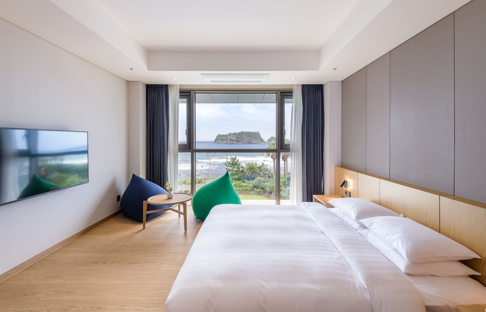 Met een verblijf bij The Grand Sumorum in Seogwipo, in de buurt Seogwipo-Stad, bevind je je op 10 min. rijden van Seogwipo Maeil Olle-markt en Seri Wereld. Dit hotel bij het strand ligt op 26 km van Jeju Shinhwa World en op 18,9 km van Hello Kitty Island. Doe of je thuis bent in één van de 132 klimaatgeregelde kamers met een koelkast en espressoapparaten. Wifi en kabelinternet zijn gratis, terwijl de lcd-televisie van 47 inch met kabelzenders voor het kijkplezier zorgt. De privébadkamers zijn uitgerust met gratis toiletartikelen en bidets. Bij de voorzieningen horen een telefoon, net zoals een kluis en een waterkoker. Afstanden worden weergegeven tot op 0,1 mijl en kilometer.