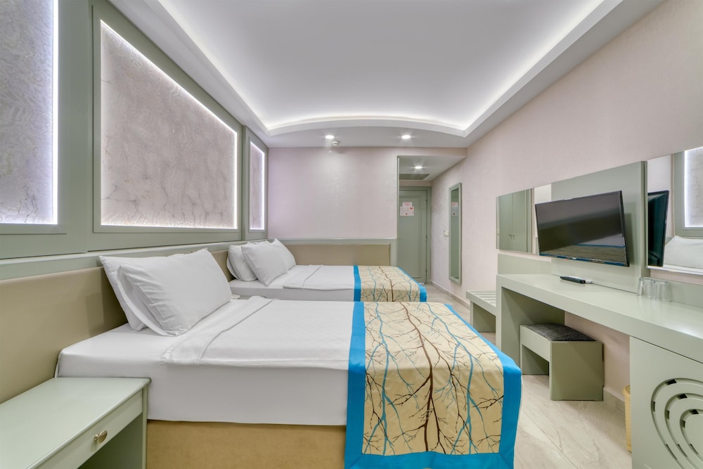 Hatipoglu Beach Hotel ligt in Alanya, in Alanya Stadscentrum, op 4 min. lopen van Kleopatra-strand en op 6 min. lopen van Alanya waterpark. Dit hotel bij het strand ligt op 0,4 km van Alanya Kabelbaan - Damlatas Station en op 0,6 km van Alanya archeologisch museum. Doe of je thuis bent in één van de 70 kamers met een minibar. Alle kamers hebben een balkon. Dankzij wifi (toeslag) blijf je online, terwijl de tv met satellietzenders zorgt voor het kijkplezier. De privébadkamers met een douche hebben gratis toiletartikelen en haardrogers. Afstanden worden weergegeven tot op 0,1 mijl en kilometer.