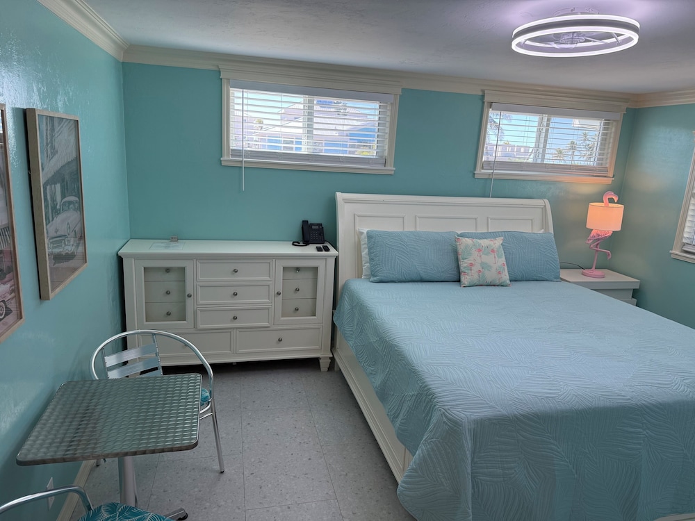 Met een verblijf bij Flamingo Inn in Fort Myers Beach, in de buurt Mid Island, bevind je je op 4 min. rijden van Estero Boulevard Beach en op 13 min. van Bonita Springs Public Beach. Dit appartement ligt op 7,7 km van Key West Express en op 13,9 km van Barefoot Beach. Doe of je thuis bent in één van de 12 individueel gedecoreerde kamers met een magnetron en een smart-tv. Dankzij gratis wifi blijf je online, terwijl de tv met digitale zenders zorgt voor het kijkplezier. Badkamers hebben een douche en haardrogers. Voorzieningen zijn bijvoorbeeld een koffiezetapparaat/waterkoker, een plafondventilator en een telefoon met gratis lokale gesprekken. Afstanden worden weergegeven tot op 0,1 mijl en kilometer.