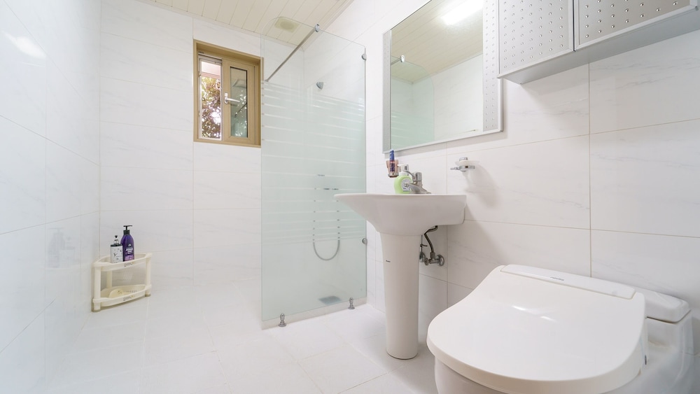 Jeju Oceancliffcottage ligt in Jeju, in de buurt Aewol, op 5 min. rijden van Gueom Stone Salt Flats en Guomridol Zoutboerderij. Dit pension ligt op 17,6 km van Dongmun-markt en op 18,4 km van Strand van Hyeopjae. Doe of je thuis bent in één van de 3 klimaatgeregelde kamers met een koelkast en een lcd-televisie. Er is gratis wifi op de kamer als je op het internet wilt surfen. Badkamers met een bad of douche zijn voorzien. Afstanden worden weergegeven tot op 0,1 mijl en kilometer.