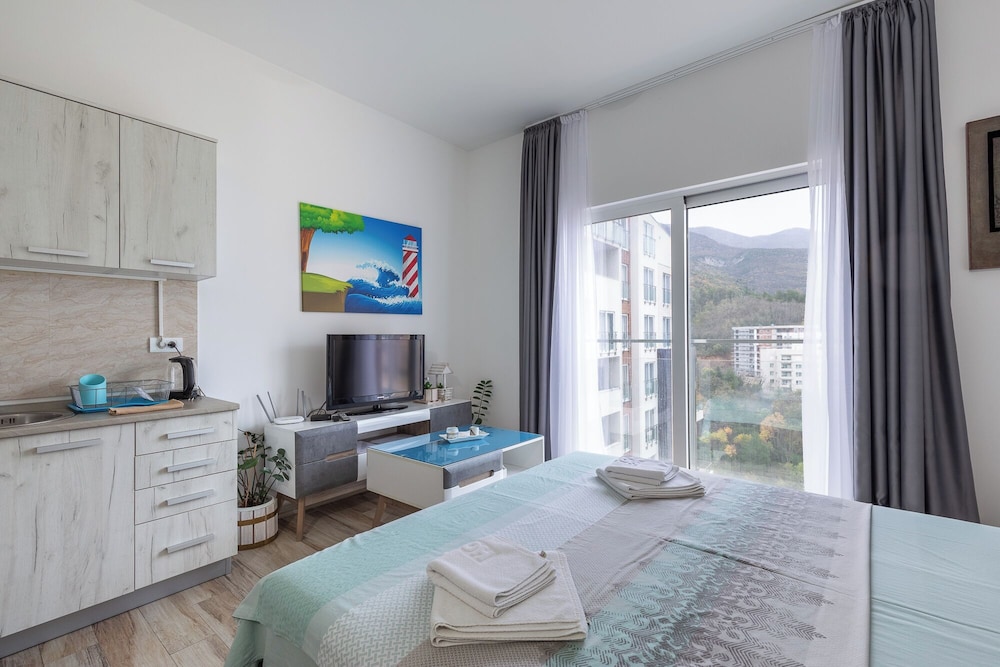 Wanneer je verblijft bij Sunny Side Resort & Spa in Bečići bevind je je vlak bij het strand, op een kwartiertje lopen van Strand van Becici en Aqua Park Mediteran. Dit appartement ligt op 24,9 km van Kotor-baai en op 7 km van Strand van Jaz. Doe of je thuis bent in één van de 13 klimaatgeregelde kamers met vloerverwarming en een smart-tv. De keukens beschikken over een koelkast, een oven en een kookplaat. Bij de voorzieningen horen wasmachines en een strijkplank/strijkijzer. Afstanden worden weergegeven tot op 0,1 mijl en kilometer.
