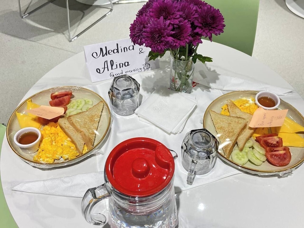 Enkele van de voorzieningen zijn gratis kabelinternet, een 24-uurs businesscentrum en een stomerij/wasserijservice. Plan je een evenement in Bisjkek? Kies voor dit hostal met 110 vierkante meter aan ruimte, waaronder een conferentieruimte en 4 vergaderruimtes. De accommodatie heeft een terras waar je van het uitzicht kunt genieten, maar profiteer ook van een gemeenschappelijke woonkamer en een receptieruimte. Geniet van een lunch, diner of brunch bij Asahi, een restaurant gespecialiseerd in lokale en internationale gerechten. In de koffiebar/het café kun je terecht voor snacks. Dagelijks kun je tegen betaling genieten van een lekker continentaal ontbijt, dat geserveerd wordt van 08.00 uur tot 13.00 uur.- Toeslag voor het continentaal ontbijt: ca. USD 3.40 per persoon