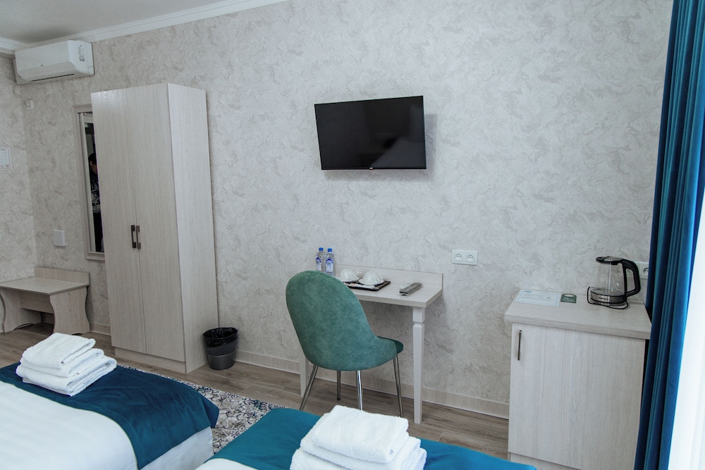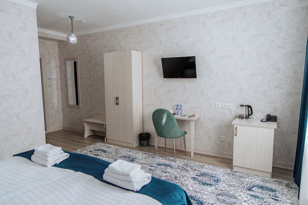 Met een verblijf bij HOTEL MERCURI MERIDIAN in Bukhara bevind je je op 5 min. rijden van Markaziy Stadium-Bukhoro en Kerk van de Aartsengel Michaël. Dit hotel ligt op 3 km van Chor-Minor en op 3,1 km van Char Minar. Doe of je thuis bent in één van de 22 klimaatgeregelde kamers. Dankzij wifi of kabelinternet blijf je online terwijl kabelzenders voor het kijkplezier zorgen. Badkamers beschikken over een bad of douche, gratis toiletartikelen en haardrogers. Voorzieningen zijn bijvoorbeeld een bureau, dagelijks is er een huishoudservice en een strijkplank/strijkijzer kun je aanvragen. Afstanden worden weergegeven tot op 0,1 mijl en kilometer.