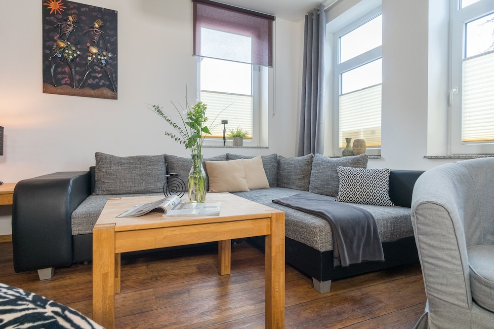 Met een verblijf bij Ein Bett im Norden Nr. 10 bevind je je in het hart van Fehmarn. St. Nikolai en Fehmarn aquarium liggen op 5 min. rijden. Dit appartement ligt op 1,9 km van Schmetterlingspark Fehmarn en op 1,9 km van Galileo Wissenswelt. Doe of je thuis bent in één van de 2 individueel gedecoreerde kamers met een magnetron en een smart-tv. Dankzij gratis wifi blijf je online, terwijl de tv met satellietzenders zorgt voor het kijkplezier. De badkamers met aparte badkuipen en douches hebben elk diepe baden en een regendouche. Bij de voorzieningen horen een waterkoker en gratis theezakjes/oploskoffie. Afstanden worden weergegeven tot op 0,1 mijl en kilometer.