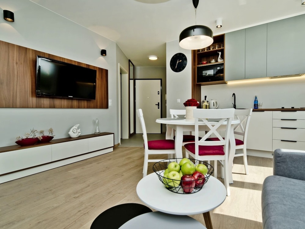 Met een verblijf bij BlueApart Apartamenty Na Klifie in Wladyslawowo, bevind je je vlak bij het strand, op slechts 5 min. lopen van Chłapowska Valley Reserve en op 11 min. lopen van Chłapowo-strand. Dit appartement ligt op 2,7 km van Boulevard van Sporthelden en op 2,8 km van Museum van Generaal Haller. Trakteer jezelf op een verblijf in één van de 5 individueel gedecoreerde kamers met kitchenettes. Alle kamers hebben een balkon. De kamers hebben een flatscreentelevisie met kabelzenders, terwijl je dankzij gratis wifi online blijft. Bij de voorzieningen horen een koelkast en een koffiezetapparaat/waterkoker. Afstanden worden weergegeven tot op 0,1 mijl en kilometer.