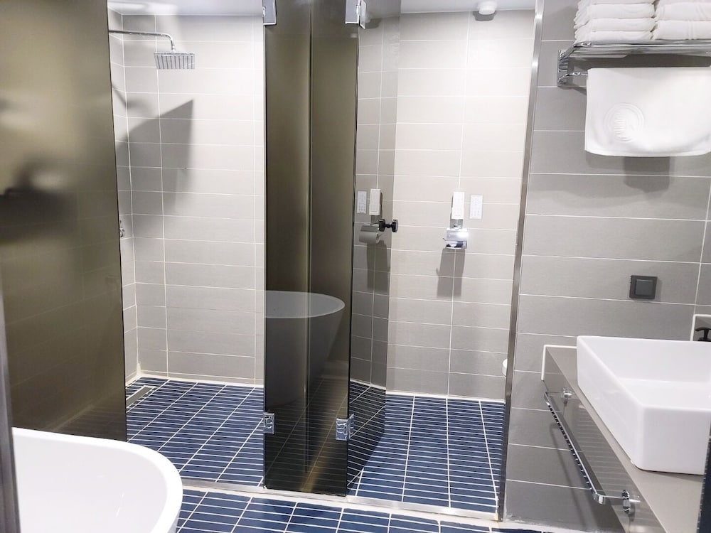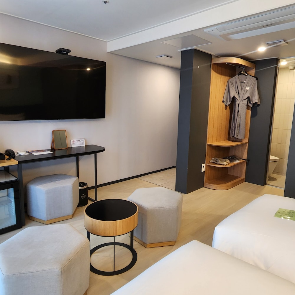 Met een verblijf bij Hound Hotel Busan Station bevind je je in het hart van Busan, op 3 min. rijden van Gukje-markt en op 10 min. van Taejongdae-park. Dit hotel voor families ligt op 6,6 km van Strand van Songdo en op 8,6 km van Strand van Gwangalli. Doe of je thuis bent in één van de 83 klimaatgeregelde kamers met een privéspa binnen en vloerverwarming. Je bed beschikt over donzen dekbedden en luxe beddengoed. Alle kamers hebben een smart-tv van 55 inch met digitale zenders, terwijl je dankzij gratis wifi online blijft. De privébadkamers hebben elk diepe baden en bidets. Afstanden worden weergegeven tot op 0,1 mijl en kilometer.
